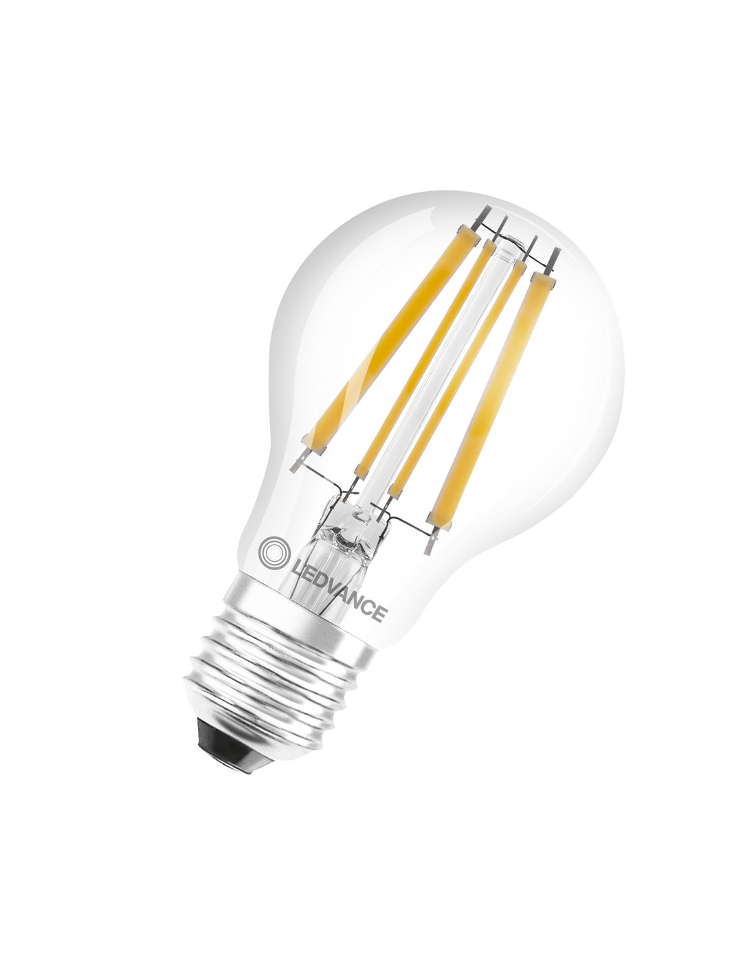 Cechy produktu: Profesjonalne lampy dla napięcia sieciowego. Kąt wiązki światła: do 300°. Brak możliwości regulacji strumienia świetlnego. Trzonek: E27. Trwałość do 15 000 h. Lampa wykonana ze szkła. Dobra jakość światła, wskaźnik oddawania barw Ra: 80; stała chromatyczność. Zalety produktu: Lampy wyposażone w innowacyjną technologię „włókien” LED. Wygląd, wymiary i strumień świetlny porównywalne z tradycyjnymi żarówkami lub żarówkami halogenowymi. Niższe zużycie energii w porównaniu do lamp żarowych lub halogenowych. Brak promieniowania UV i podczerwonego w wiązce światła. Natychmiast 100 % światła, bez czasu nagrzewania. Łatwy montaż zamiast zwykłych żarówek. Obszary zastosowań: Doskonałe rozwiązanie do instalacji dekoracyjnych. Zastosowania domowe. Oświetlenie ogólne. Do użytku na zewnątrz tylko w odpowiednich oprawach zewnętrznych. Porady dotyczące bezpieczeństwa: Nie dotykaj lampy, jeśli jest stłuczona.. Nie wolno używać, jeśli zewnętrzne źródło światła jest uszkodzone..