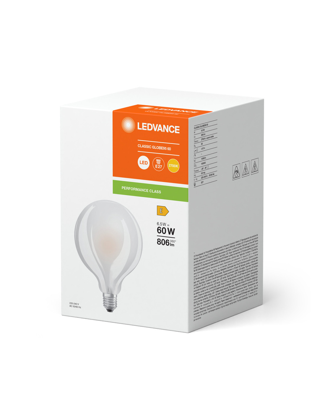 ŻARÓWKA LED P CL GLOBE95 60 6,5W 2700K ciepła biała E27 FIL GL FR 806LM