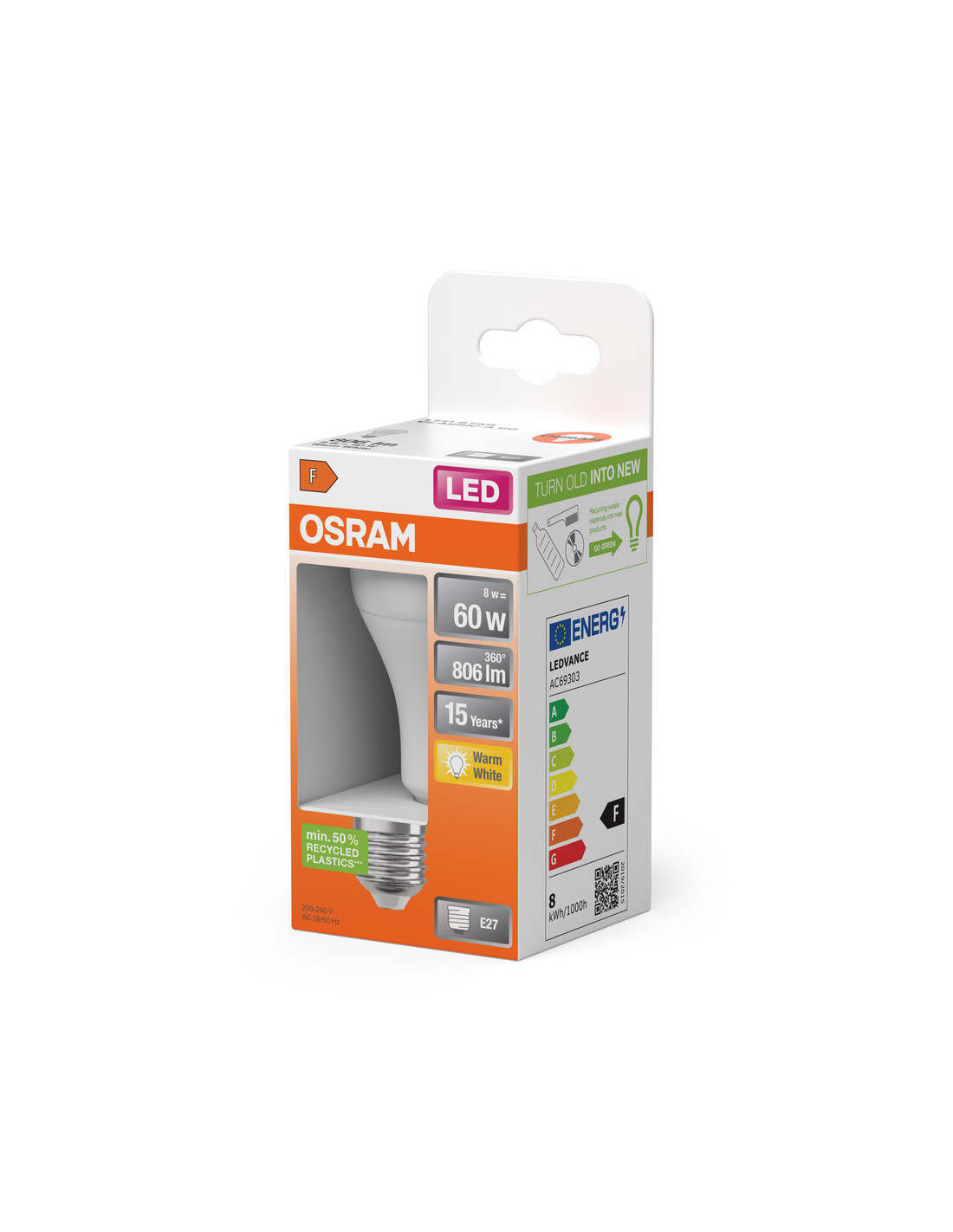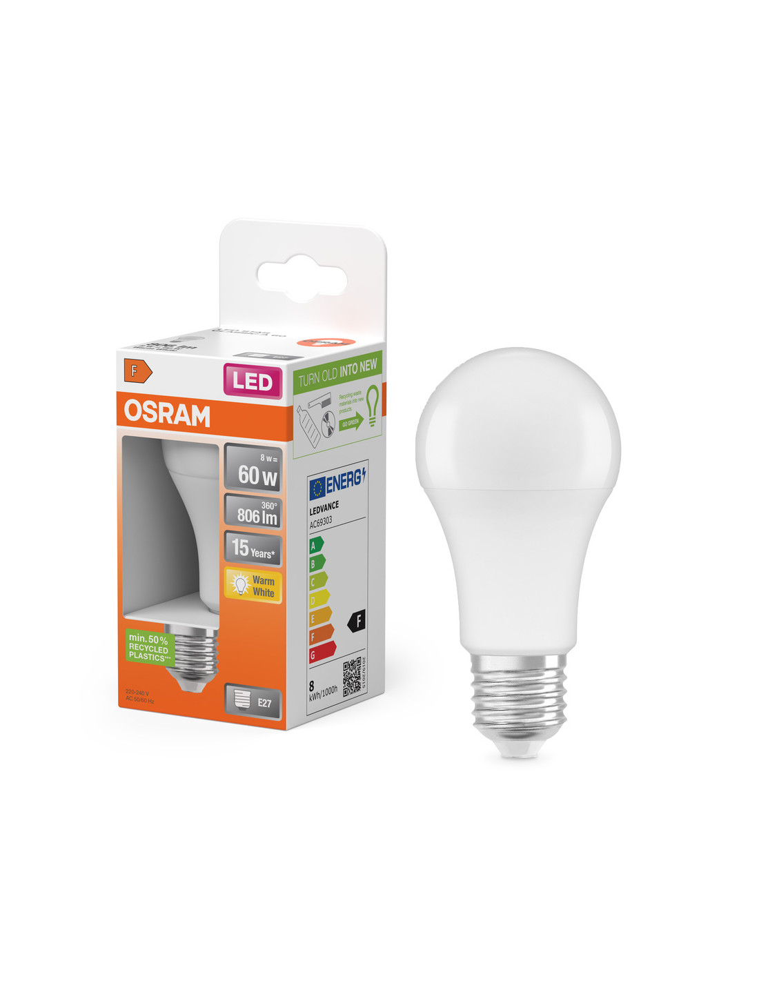 Cechy produktu: LED zamienniki tradycyjnych żarówek. Lampy niezawierające rtęci. Zalety produktu: Niższe zużycie energii w porównaniu do lamp żarowych lub halogenowych. Prosty w użyciu zamiennik żarówek klasycznych dzięki kompaktowej konstrukcji. Natychmiast 100 % światła, bez czasu nagrzewania. Obszary zastosowań: Zastosowania domowe. Oświetlenie ogólne. Do użytku na zewnątrz tylko w odpowiednich oprawach zewnętrznych. Porady dotyczące bezpieczeństwa: Nie dotykaj lampy, jeśli jest stłuczona.. Nie wolno używać, jeśli zewnętrzne źródło światła jest uszkodzone..