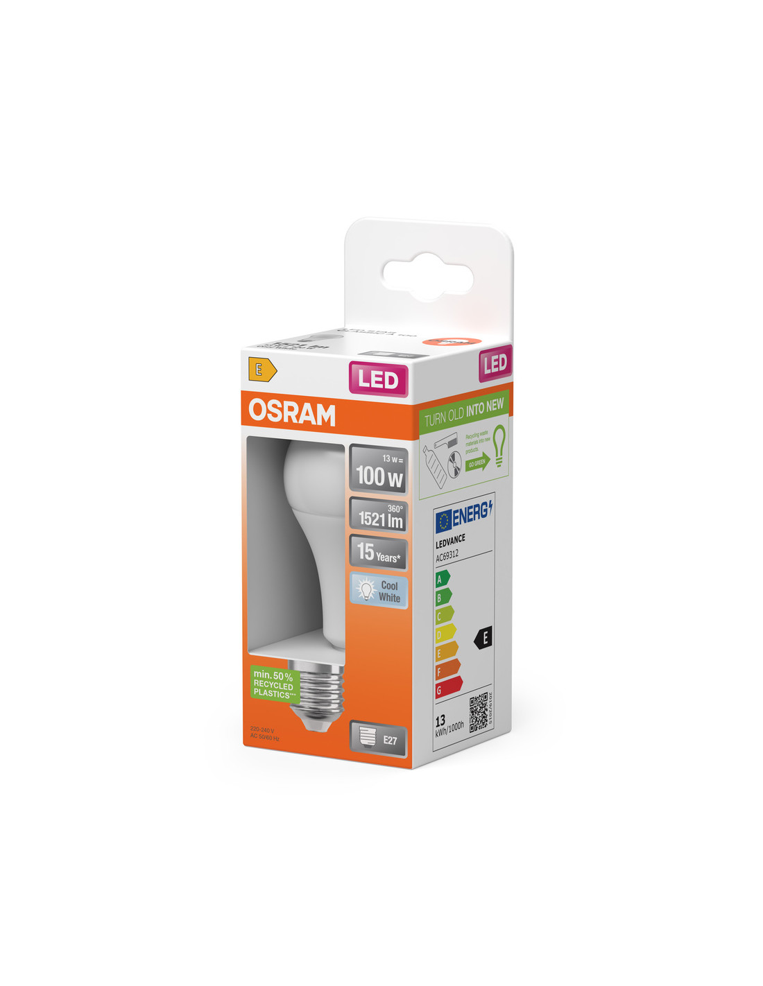 Cechy produktu: LED zamienniki tradycyjnych żarówek. Lampy niezawierające rtęci. Zalety produktu: Niższe zużycie energii w porównaniu do lamp żarowych lub halogenowych. Prosty w użyciu zamiennik żarówek klasycznych dzięki kompaktowej konstrukcji. Natychmiast 100 % światła, bez czasu nagrzewania. Obszary zastosowań: Zastosowania domowe. Oświetlenie ogólne. Do użytku na zewnątrz tylko w odpowiednich oprawach zewnętrznych. Porady dotyczące bezpieczeństwa: Nie dotykaj lampy, jeśli jest stłuczona.. Nie wolno używać, jeśli zewnętrzne źródło światła jest uszkodzone..