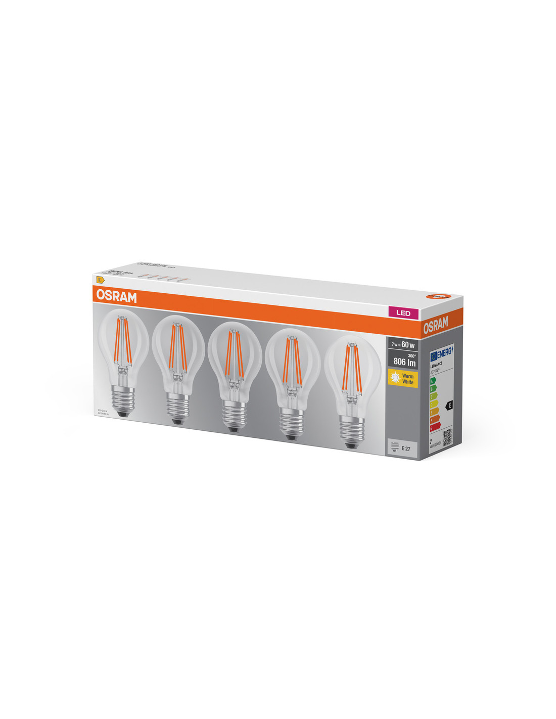 OSRAM 5 szt. Przezroczysta lampa LED E27 6,5W CLASSIC ciepłobiała.