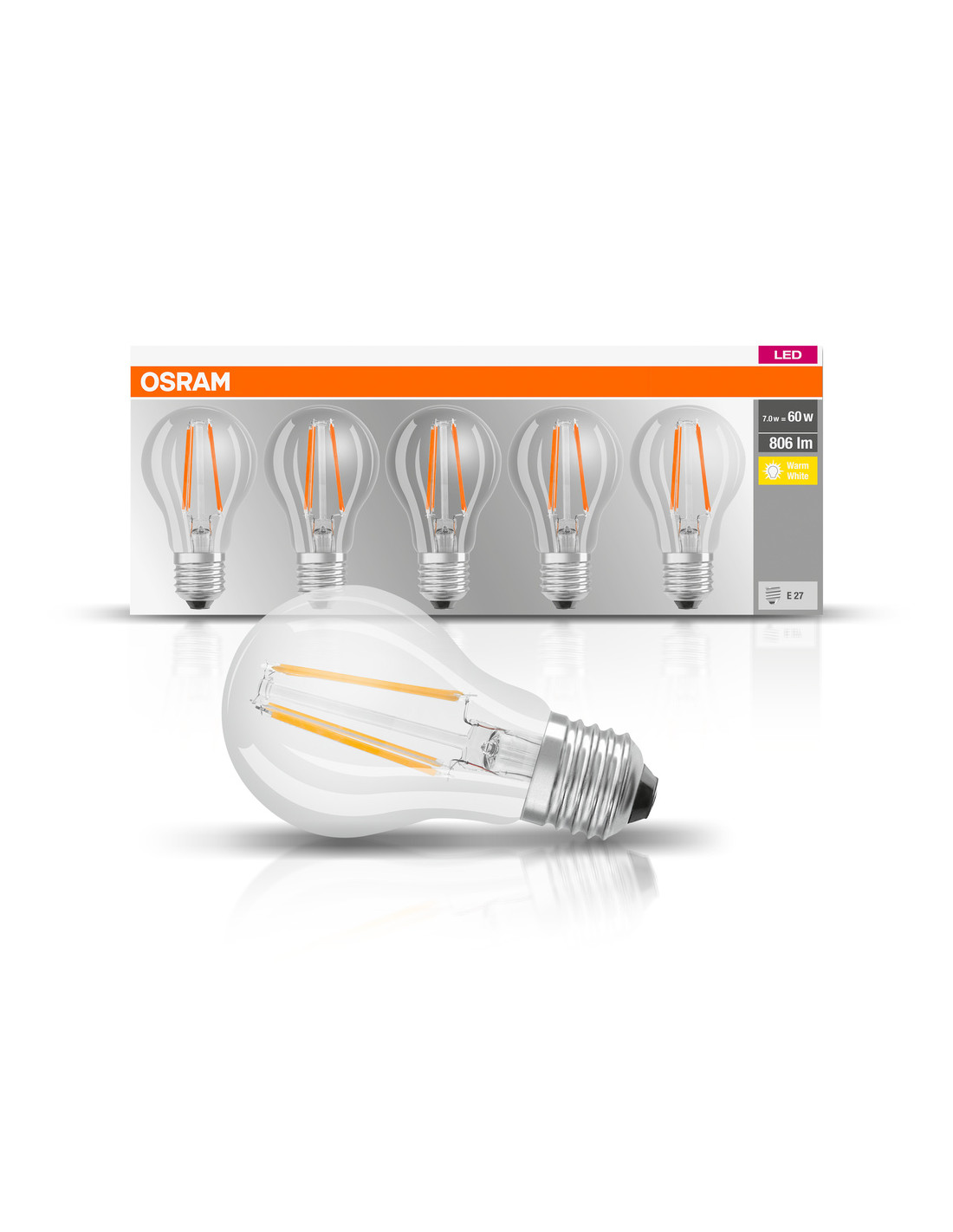 ŻARÓWKA LED 5-PAK LED BASE CLA60 6.5W 2700K ciepła biała E27 FIL FS5
