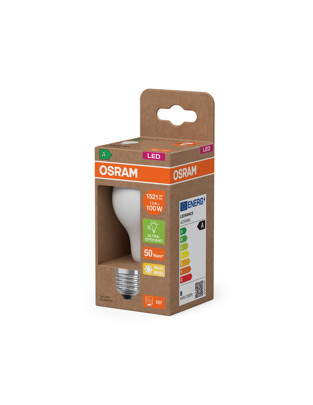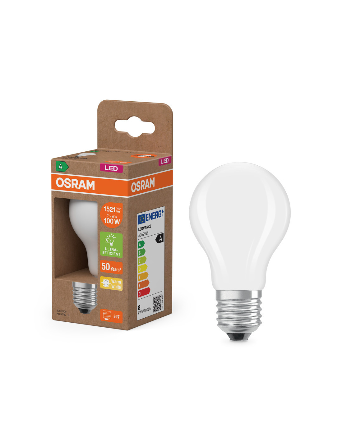 ŻARÓWKA LED ENERGY CLASS CLA100 7,2W 2700K ciepła biała E27 1521LM GL FR EE KLASA A
