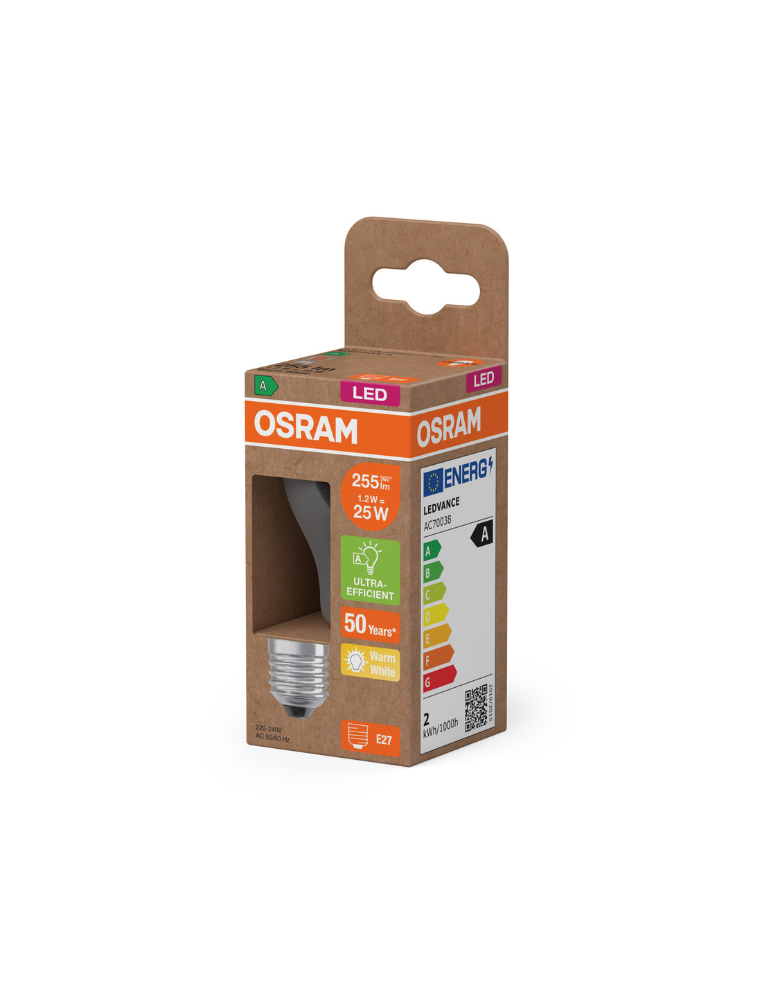 ŻARÓWKA LED ENERGY CLASS CLP25 1,2W 2700K ciepła biała E27 255LM FIL EE KLASA A