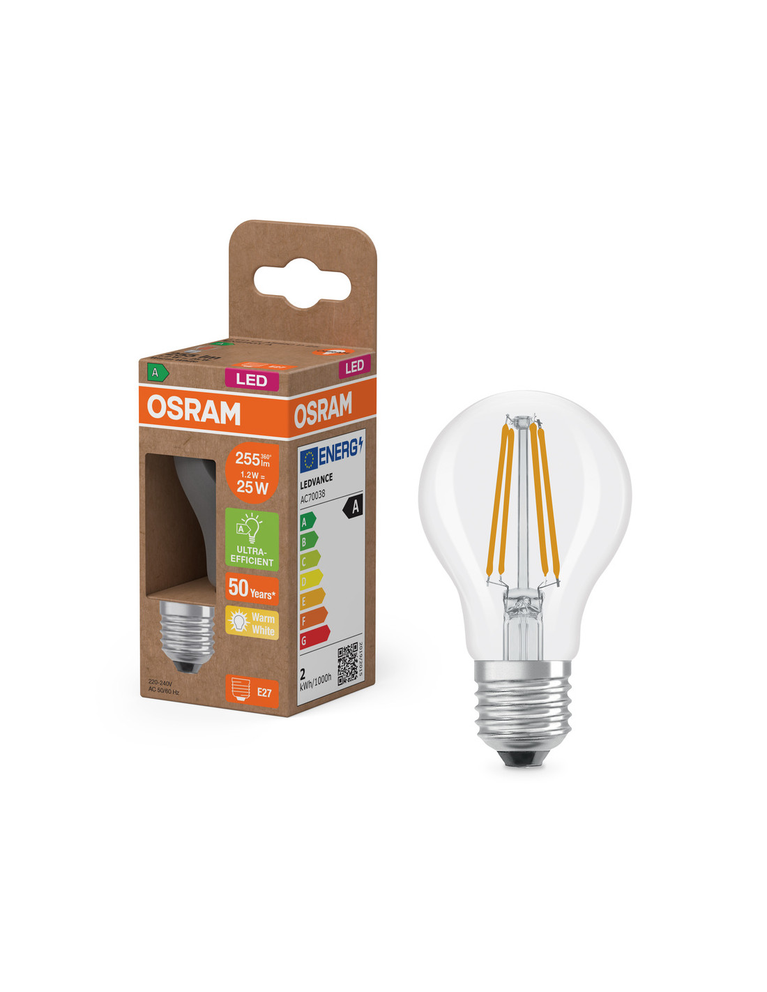 Cechy produktu: Lampy LED dla napięcia sieciowego. Kąt wiązki światła: do 300°. Długa trwałość do 50 000 godzin. Bardzo duża liczba cykli przełączania 500 000. Skuteczność świetlna do 210 lm/W. Zalety produktu: Lampy wyposażone w innowacyjną technologię „włókien” LED. Wygląd, wymiary i strumień świetlny porównywalne z żarówkami halogenowymi. Niskie zużycie energii. Natychmiast 100 % światła, bez czasu nagrzewania. Niskie tętnienie światła. Obszary zastosowań: Doskonałe rozwiązanie do instalacji dekoracyjnych. Zastosowania domowe. Oświetlenie ogólne. Do użytku na zewnątrz tylko w odpowiednich oprawach zewnętrznych. Porady dotyczące bezpieczeństwa: Nie dotykaj lampy, jeśli jest stłuczona.. Nie wolno używać, jeśli zewnętrzne źródło światła jest uszkodzone..