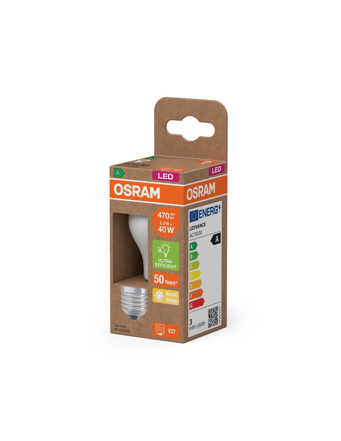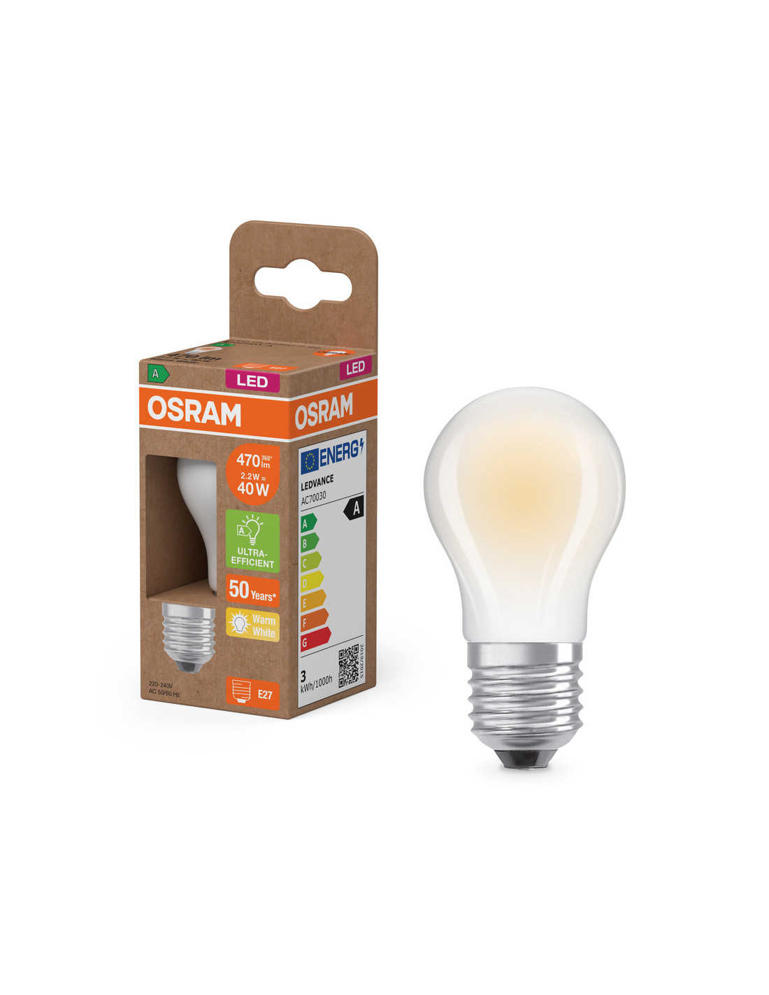 ŻARÓWKA LED ENERGY CLASS CLP40 2,2W 2700K ciepła biała E27 470LM GL FR EE KLASA A