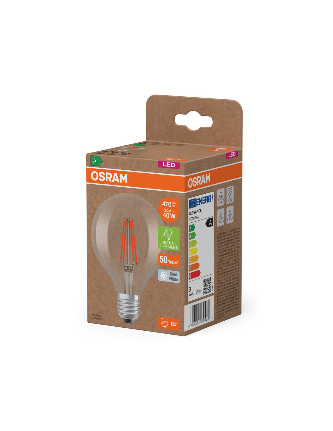 ŻARÓWKA LED ENERGY CLASS G80 40 2,2W 4000K neutralna biała E27 470LM FIL EE KLASA A
