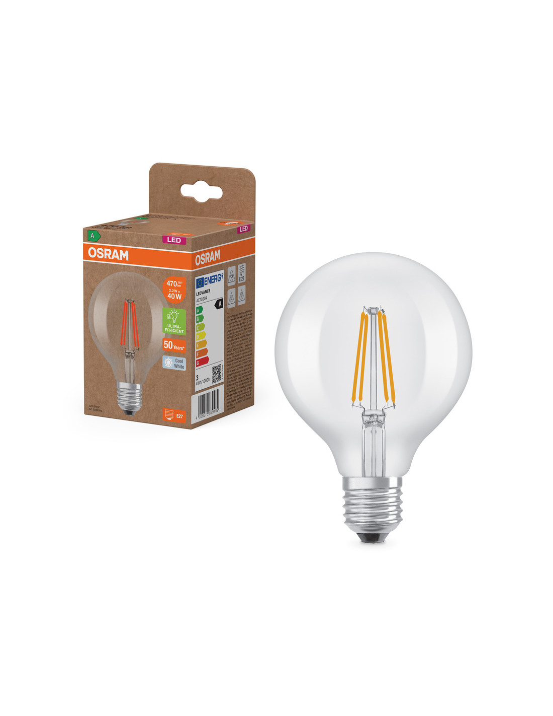 Cechy produktu: Lampy LED dla napięcia sieciowego. Kąt wiązki światła: do 300°. Długa trwałość do 50 000 godzin. Bardzo duża liczba cykli łączeniowych do 100 000. Skuteczność świetlna do 210 lm/W. Zalety produktu: Lampy wyposażone w innowacyjną technologię „włókien” LED. Wygląd, wymiary i strumień świetlny porównywalne z żarówkami halogenowymi. Niskie zużycie energii. Natychmiast 100 % światła, bez czasu nagrzewania. Niskie tętnienie światła. Obszary zastosowań: Doskonałe rozwiązanie do instalacji dekoracyjnych. Zastosowania domowe. Oświetlenie ogólne. Do użytku na zewnątrz tylko w odpowiednich oprawach zewnętrznych. Porady dotyczące bezpieczeństwa: Nie dotykaj lampy, jeśli jest stłuczona.. Nie wolno używać, jeśli zewnętrzne źródło światła jest uszkodzone..