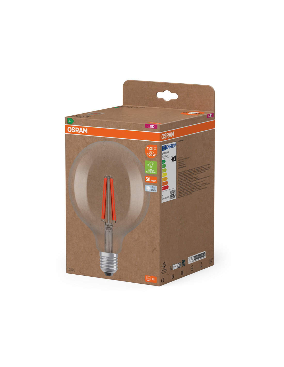 Lampy LED, klasyczny kształt żarówki kulistej, KLASA EFEKTYWNOŚCI ENERGETYCZNEJ A.