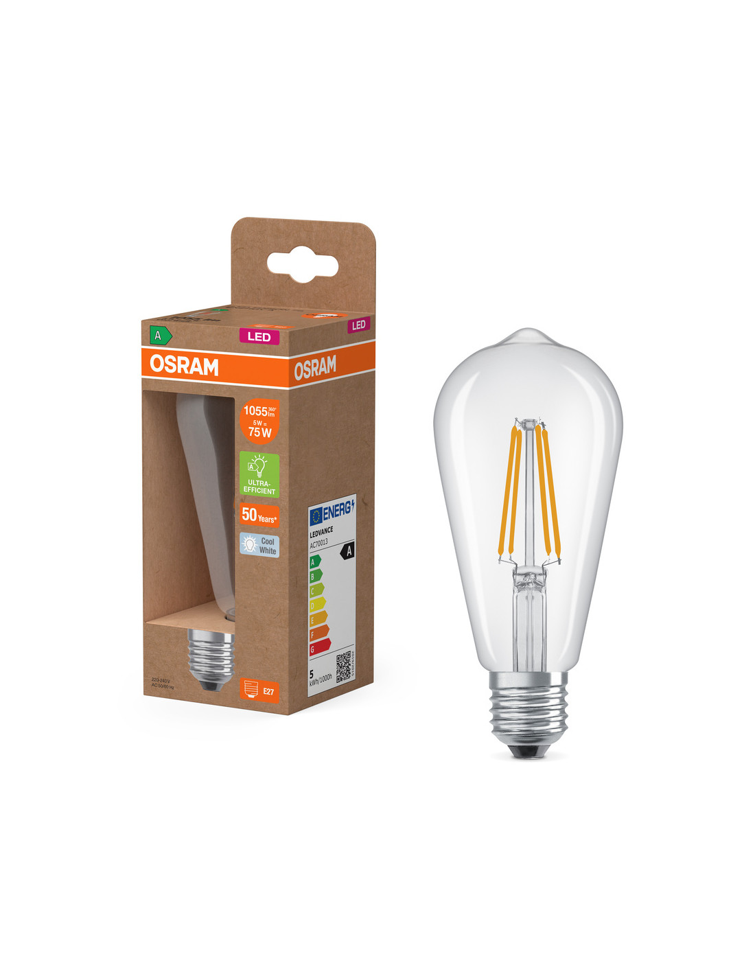 Cechy produktu: Lampy LED dla napięcia sieciowego. Kąt wiązki światła: do 300°. Długa trwałość do 50 000 godzin. Bardzo duża liczba cykli łączeniowych do 100 000. Skuteczność świetlna do 210 lm/W. Zalety produktu: Lampy wyposażone w innowacyjną technologię „włókien” LED. Wygląd, wymiary i strumień świetlny porównywalne z żarówkami halogenowymi. Niskie zużycie energii. Natychmiast 100 % światła, bez czasu nagrzewania. Niskie tętnienie światła. Obszary zastosowań: Doskonałe rozwiązanie do instalacji dekoracyjnych. Zastosowania domowe. Oświetlenie ogólne. Do użytku na zewnątrz tylko w odpowiednich oprawach zewnętrznych. Porady dotyczące bezpieczeństwa: Nie dotykaj lampy, jeśli jest stłuczona.. Nie wolno używać, jeśli zewnętrzne źródło światła jest uszkodzone..