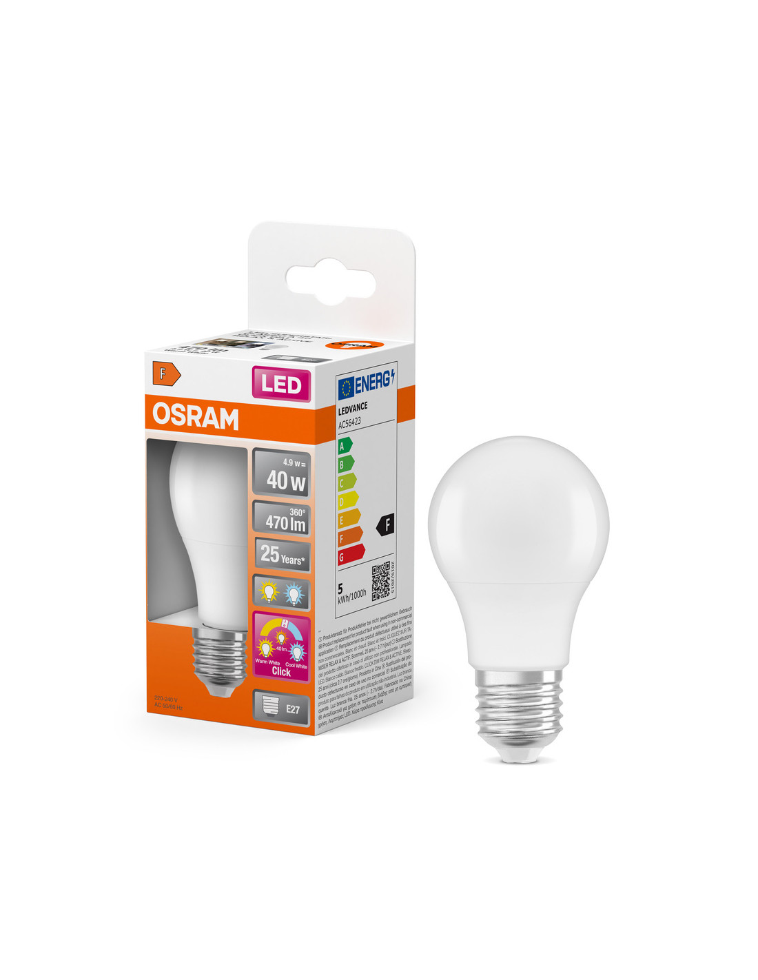 ŻARÓWKA LED SUPERSTAR CLA40 3CLICK ACTIVE&RELAX&SLEEP 4,9W/827&840 FR 470LM E27