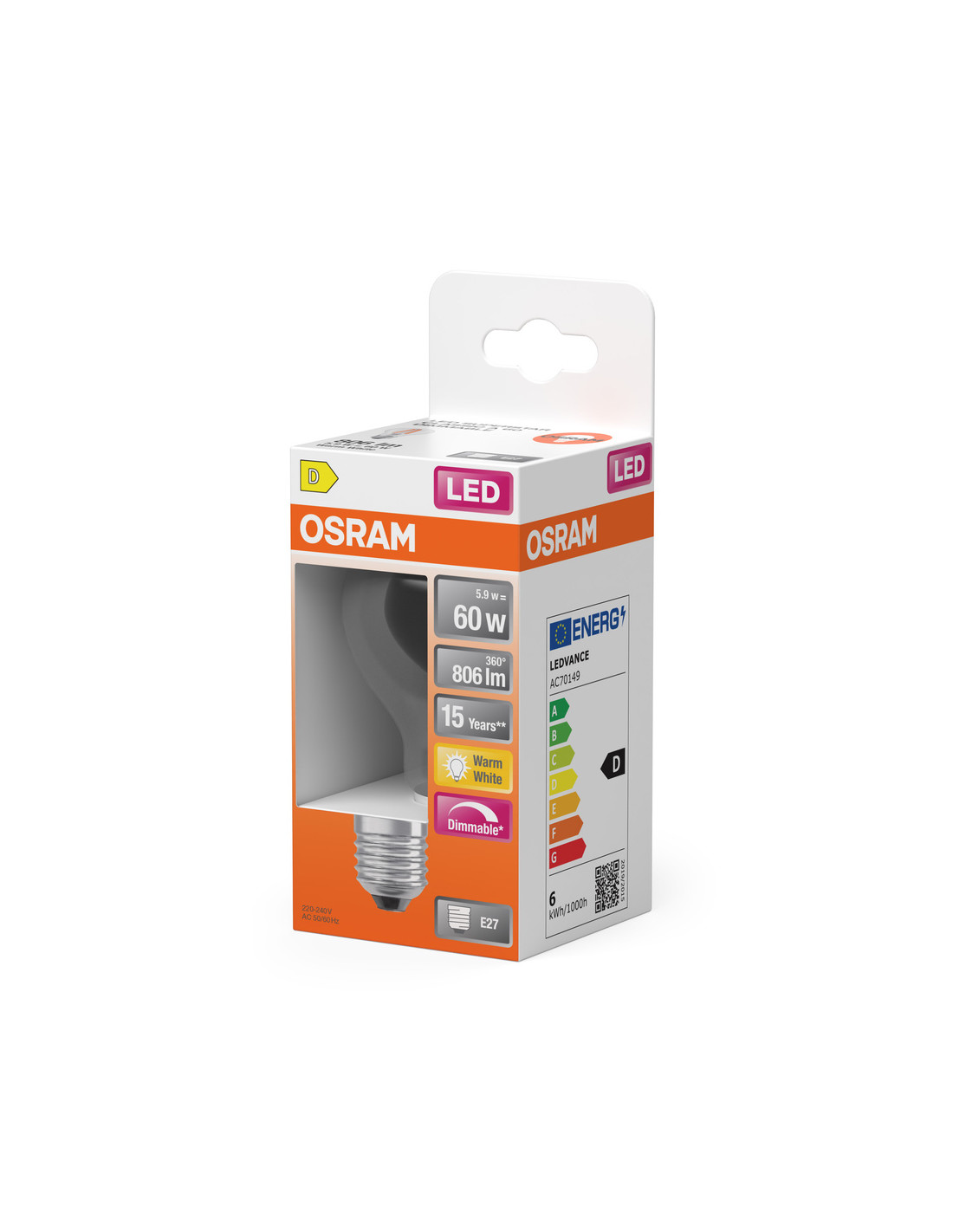 Cechy produktu: Profesjonalne lampy dla napięcia sieciowego. Ściemnialne (za pomocą licznych popularnych ściemniaczy, zobacz więcej www.ledvance.pl/dim). Kąt wiązki światła: do 360°. Trwałość do 15 000 h. Lampa wykonana ze szkła. Dobra jakość światła, wskaźnik oddawania barw Ra: 80; stała chromatyczność. Zalety produktu: Lampy wyposażone w innowacyjną technologię „włókien” LED. Niższe zużycie energii w porównaniu do lamp żarowych lub halogenowych. Brak promieniowania UV i podczerwonego w wiązce światła. Natychmiast 100 % światła, bez czasu nagrzewania. Łatwy montaż zamiast zwykłych żarówek. Niskie obciążenie cieplne (w porównaniu ze standardowym produktem referencyjnym). Wygląd, wymiary i strumień świetlny porównywalne z żarówkami halogenowymi. Obszary zastosowań: Doskonałe rozwiązanie do instalacji dekoracyjnych. Zastosowania domowe. Oświetlenie ogólne. Do użytku na zewnątrz tylko w odpowiednich oprawach zewnętrznych. Porady dotyczące bezpieczeństwa: Nie dotykaj lampy, jeśli jest stłuczona.. Nie wolno używać, jeśli zewnętrzne źródło światła jest uszkodzone..
