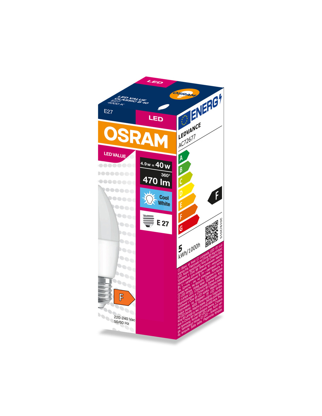 ŻARÓWKA LED VALUE CLB40 4.9W 4000K neutralna biała 470LM FR E27