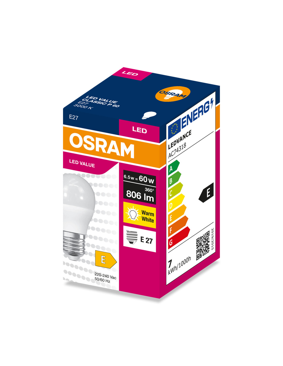 ŻARÓWKA LED VALUE CLP60 6.5W 3000K ciepła biała 806LM FR E27