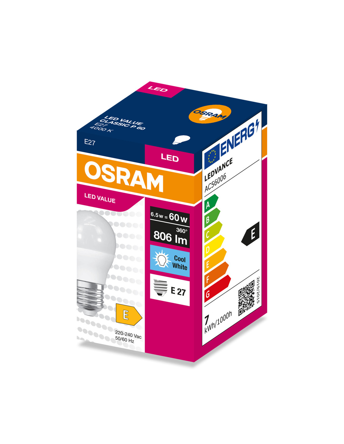 ŻARÓWKA LED VALUE CLP60 6.5W 4000K neutralna biała 806LM FR E27