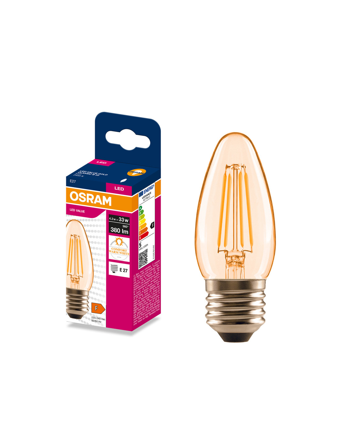 ŻARÓWKA LED VALUE RF CLB34 4,2W 2400K 380LM FIL GOLD E27