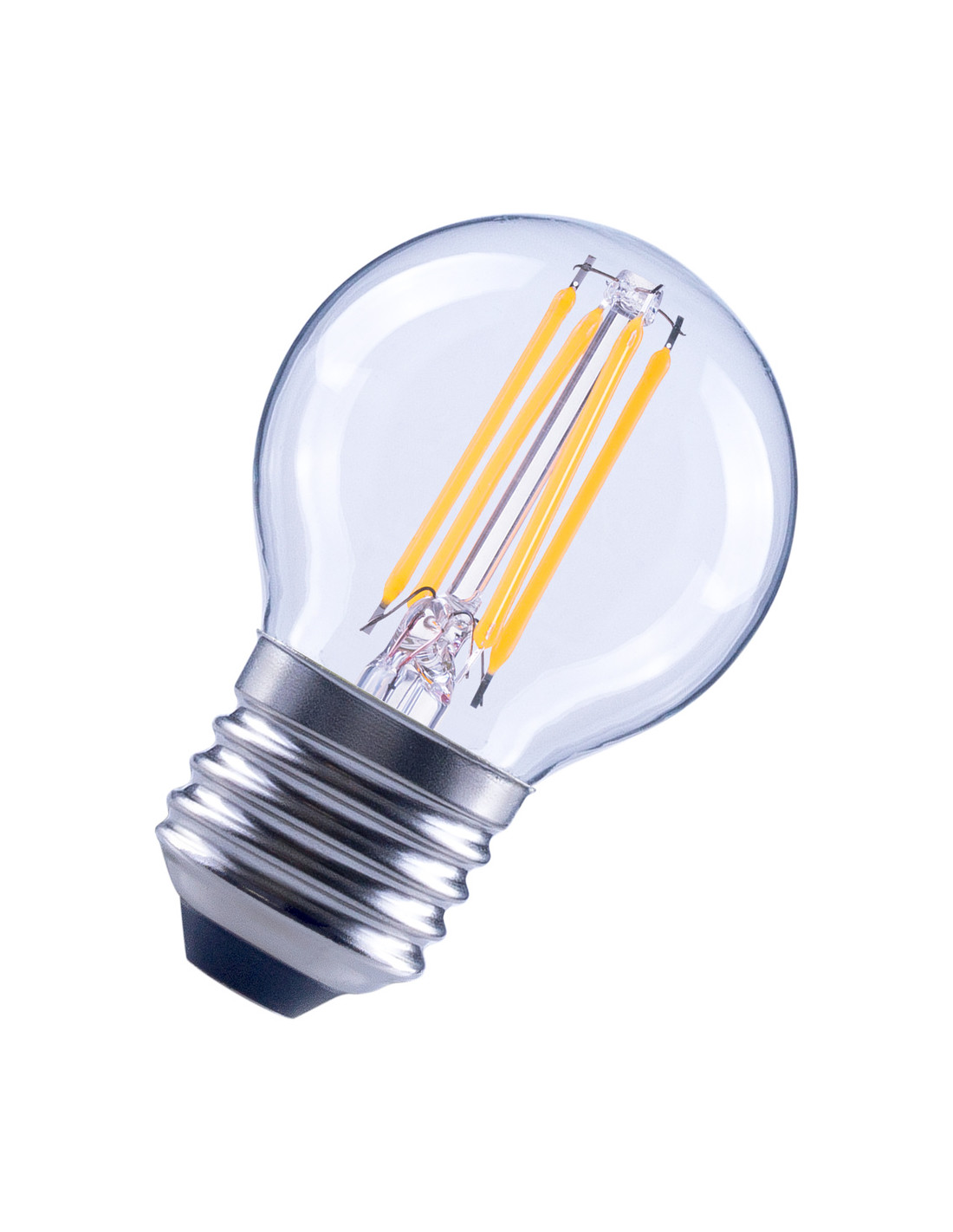 Cechy produktu: LED zamienniki tradycyjnych żarówek. Kąt wiązki światła: do 300°. Trwałość do 15 000 h. Dobre oddawanie barw (Ra 80) i stabilność braw przez cały czas eksploatacji lampy. Brak możliwości regulacji strumienia świetlnego. Zalety produktu: Wygląd, wymiary i strumień świetlny porównywalne z tradycyjnymi żarówkami lub żarówkami halogenowymi. Niższe zużycie energii w porównaniu do lamp żarowych lub halogenowych. Brak promieniowania UV i podczerwonego w wiązce światła. Łatwy montaż zamiast zwykłych żarówek. Natychmiast 100 % światła, bez czasu nagrzewania. Obszary zastosowań: Doskonałe rozwiązanie do instalacji dekoracyjnych. Zastosowania domowe. Oświetlenie ogólne. Do użytku na zewnątrz tylko w odpowiednich oprawach zewnętrznych. Porady dotyczące bezpieczeństwa: Nie dotykaj lampy, jeśli jest stłuczona.. Nie wolno używać, jeśli zewnętrzne źródło światła jest uszkodzone..