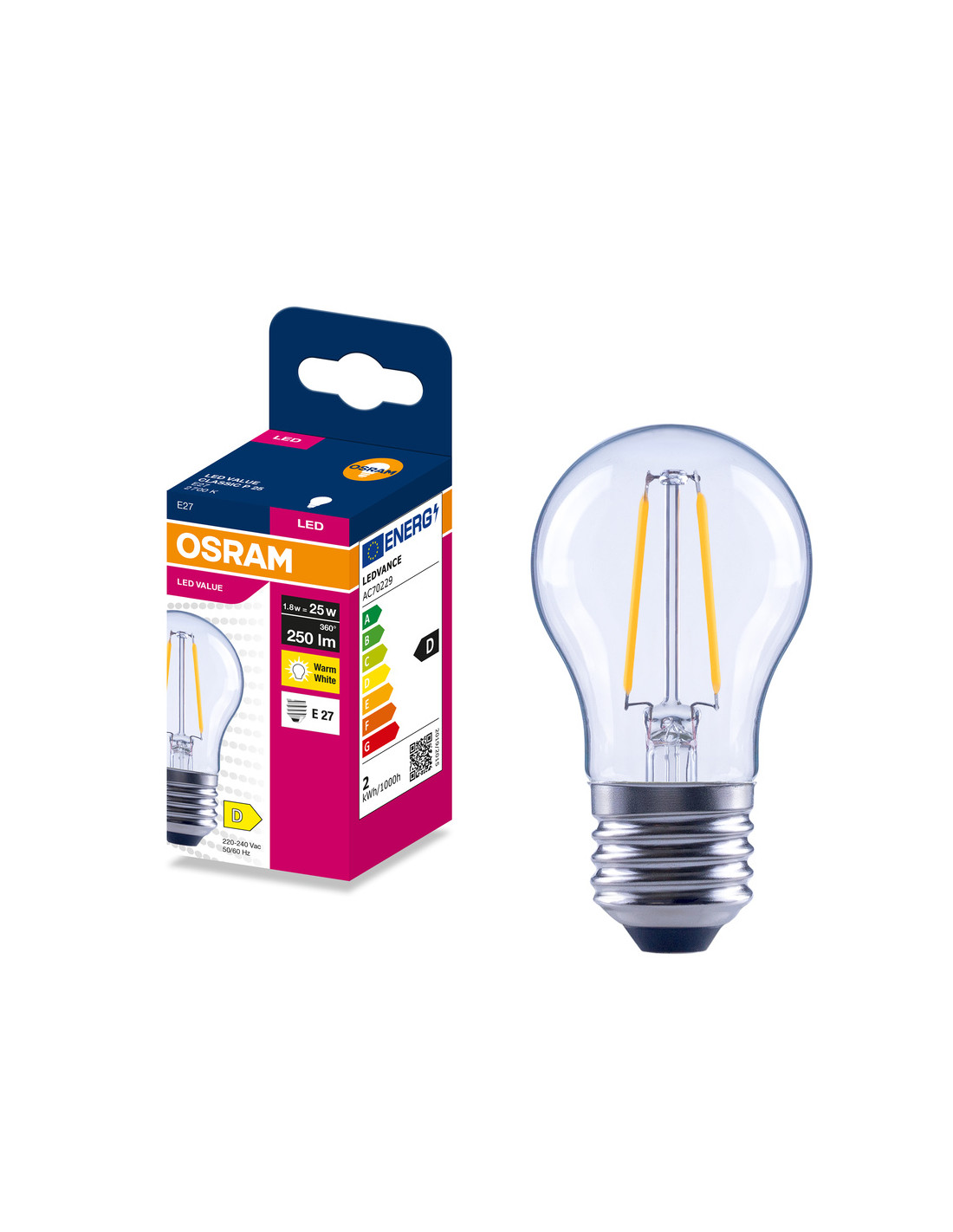 ŻARÓWKA LED VALUE RF CLP25 1,8W 2700K ciepła biała 250LM FIL E27