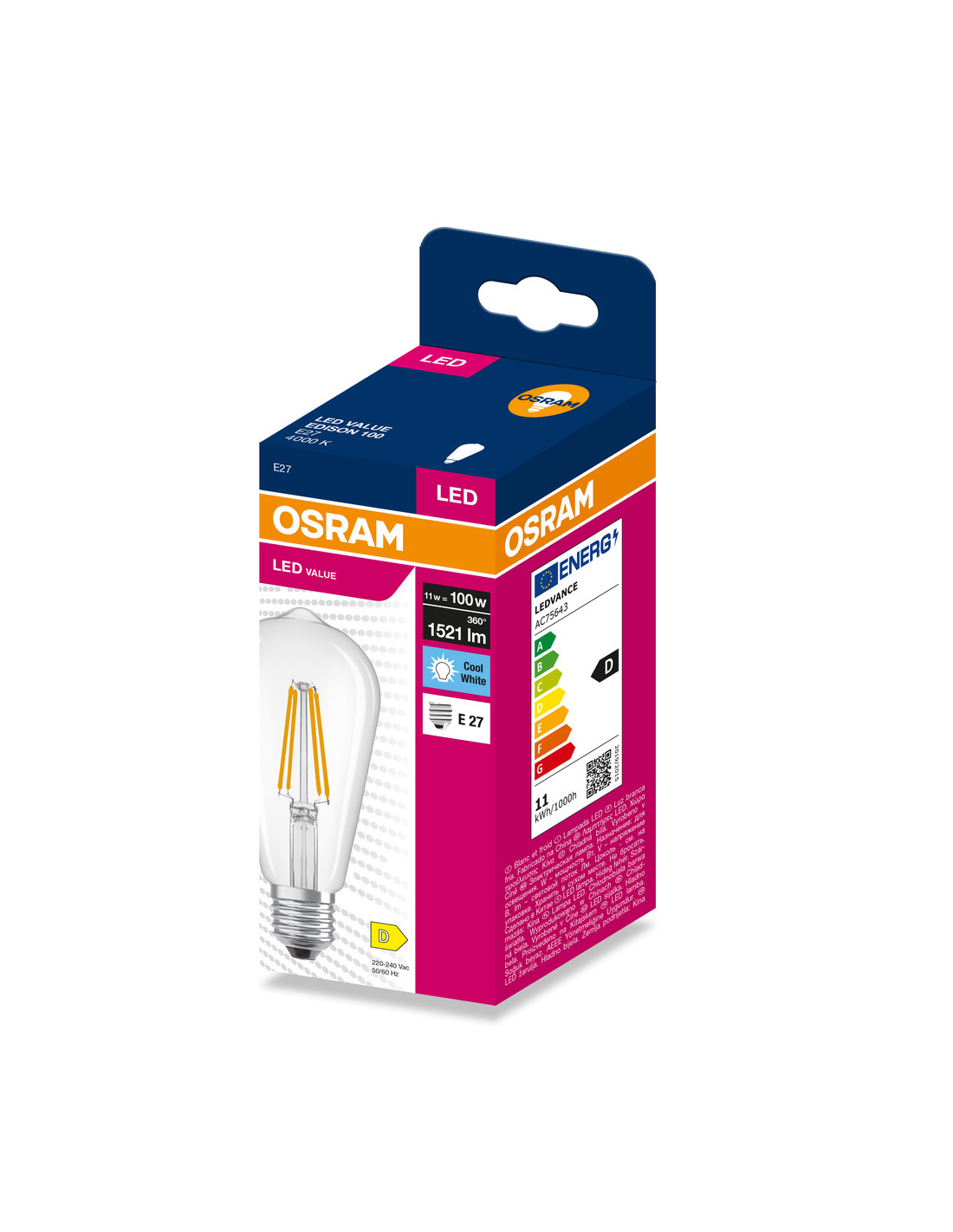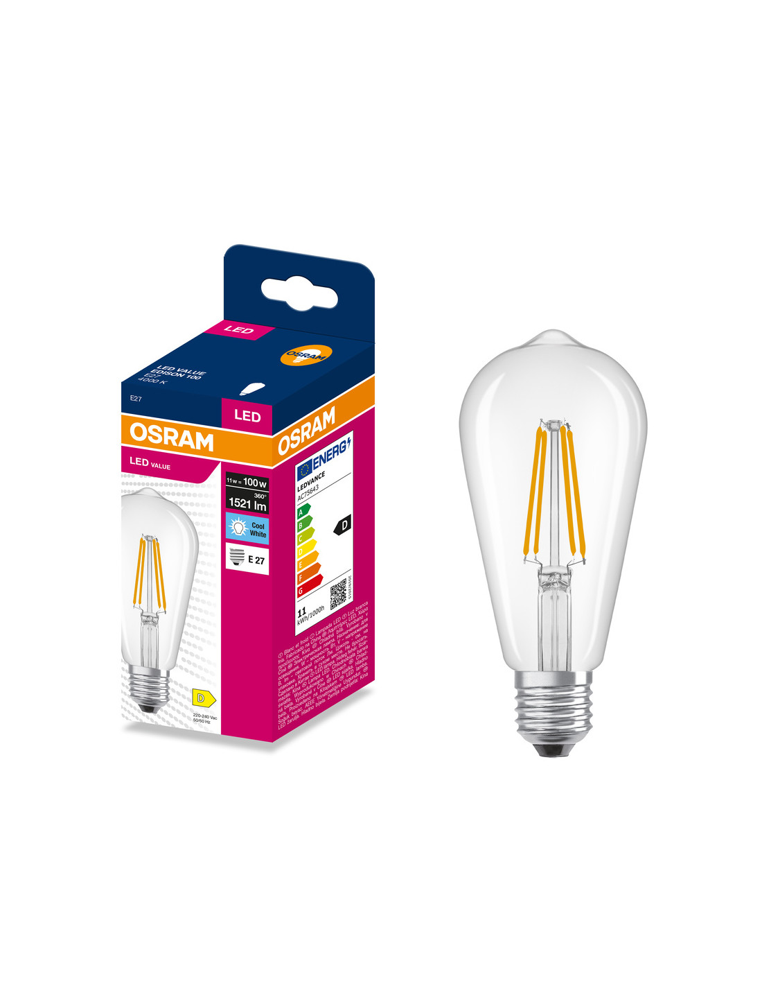 ŻARÓWKA LED VALUE RF EDISON 100 11W 4000K neutralna biała 1521LM FIL E27