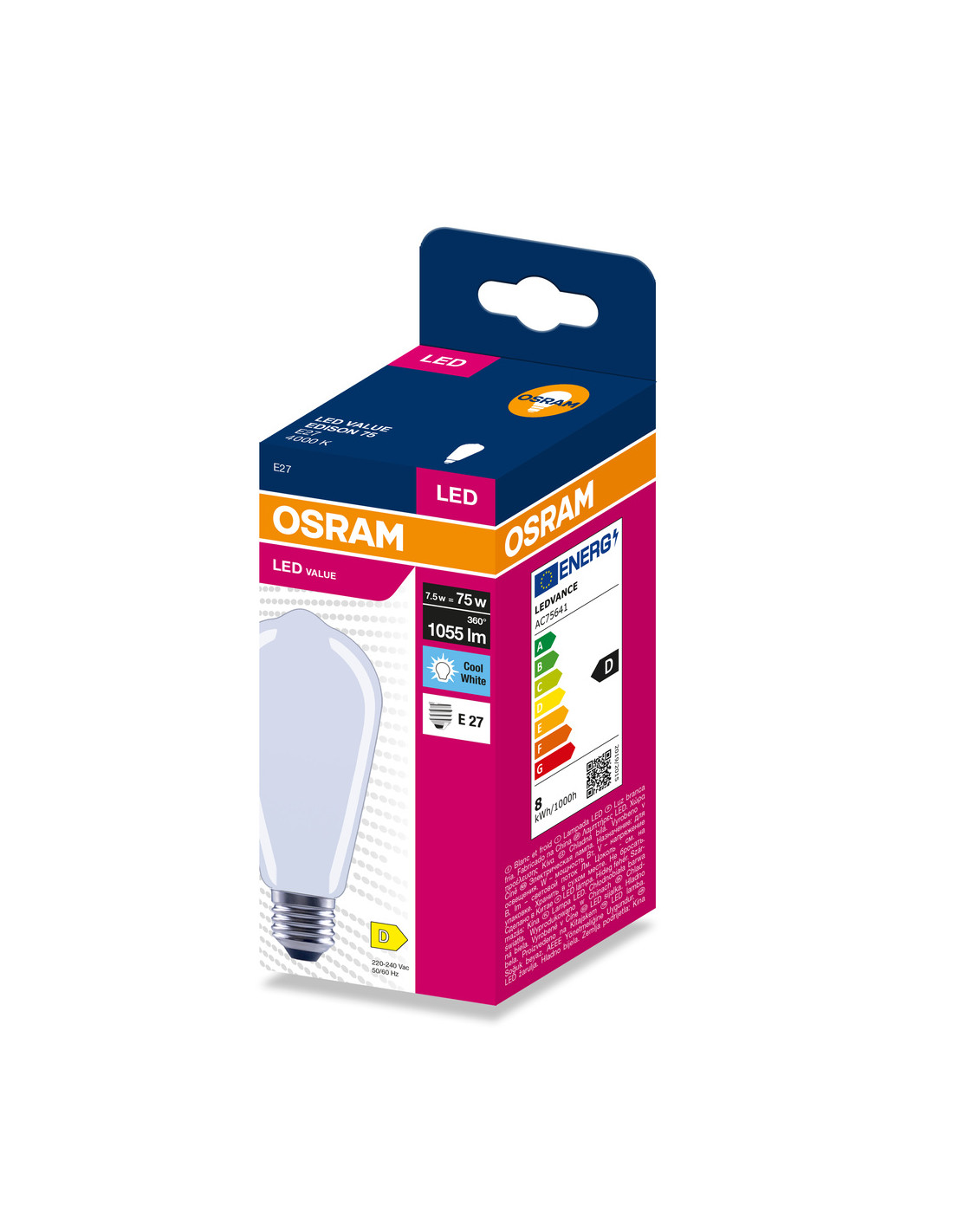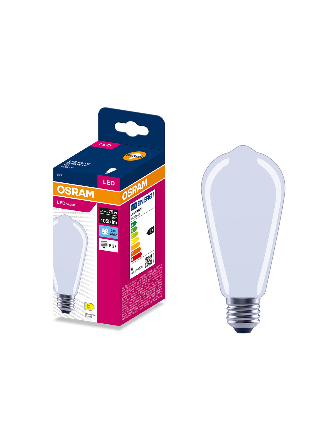 ŻARÓWKA LED VALUE RF EDISON 75 7,5W 4000K neutralna biała 1055LM FIL FR E27