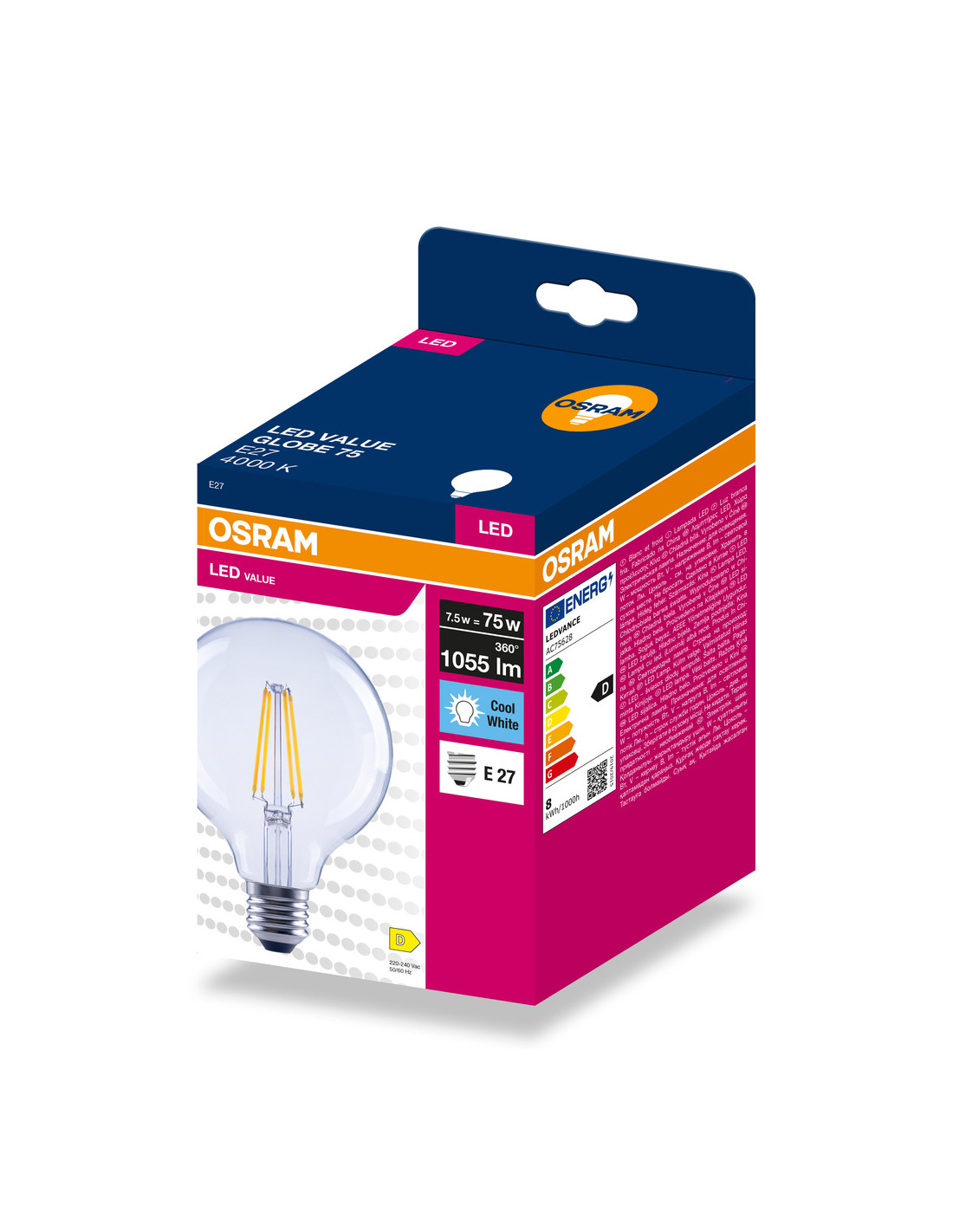 ŻARÓWKA LED VALUE RF GLOBE 95 75 7,5W 4000K neutralna biała 1055LM FIL E27