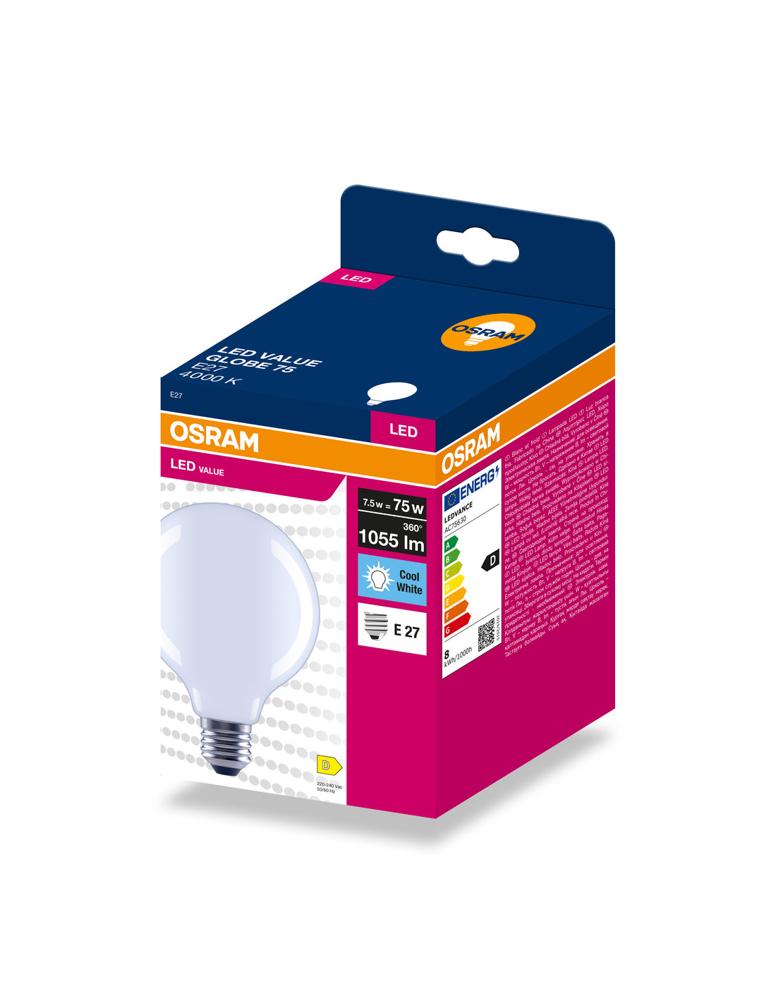 Cechy produktu: LED zamienniki tradycyjnych żarówek. Kąt wiązki światła: do 300°. Trwałość do 15 000 h. Dobre oddawanie barw (Ra 80) i stabilność braw przez cały czas eksploatacji lampy. Brak możliwości regulacji strumienia świetlnego. Zalety produktu: Wygląd, wymiary i strumień świetlny porównywalne z tradycyjnymi żarówkami lub żarówkami halogenowymi. Niższe zużycie energii w porównaniu do lamp żarowych lub halogenowych. Brak promieniowania UV i podczerwonego w wiązce światła. Łatwy montaż zamiast zwykłych żarówek. Natychmiast 100 % światła, bez czasu nagrzewania. Obszary zastosowań: Doskonałe rozwiązanie do instalacji dekoracyjnych. Zastosowania domowe. Oświetlenie ogólne. Do użytku na zewnątrz tylko w odpowiednich oprawach zewnętrznych. Porady dotyczące bezpieczeństwa: Nie dotykaj lampy, jeśli jest stłuczona.. Nie wolno używać, jeśli zewnętrzne źródło światła jest uszkodzone..
