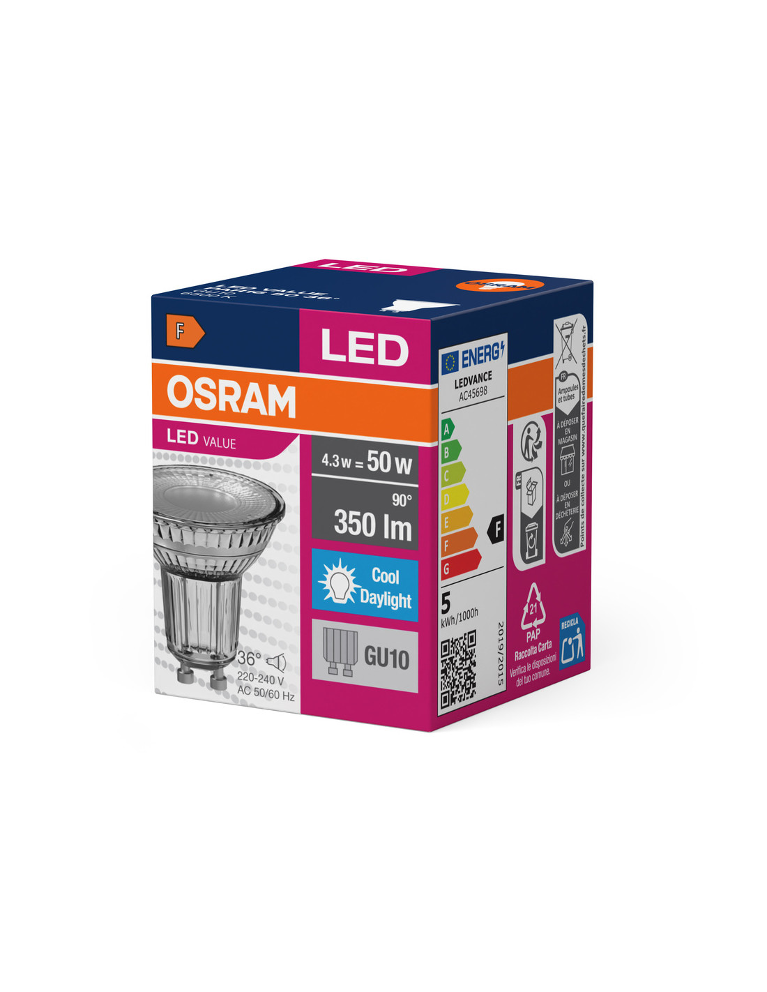ŻARÓWKA LED VALUE PAR16 50 4,3W 6500K zimna biała 230V GU10
