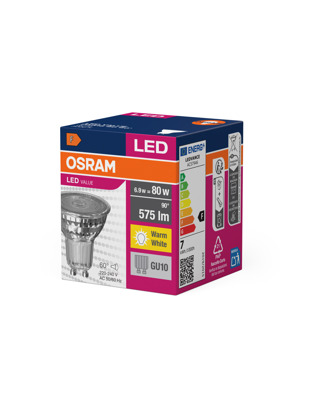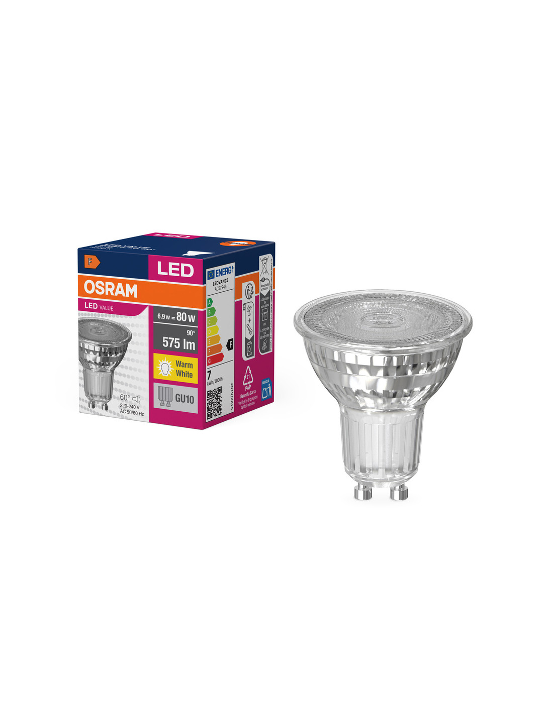 ŻARÓWKA LED VALUE PAR16 80 6,9W 3000K ciepła biała 575LM 60° GU10 GLASS