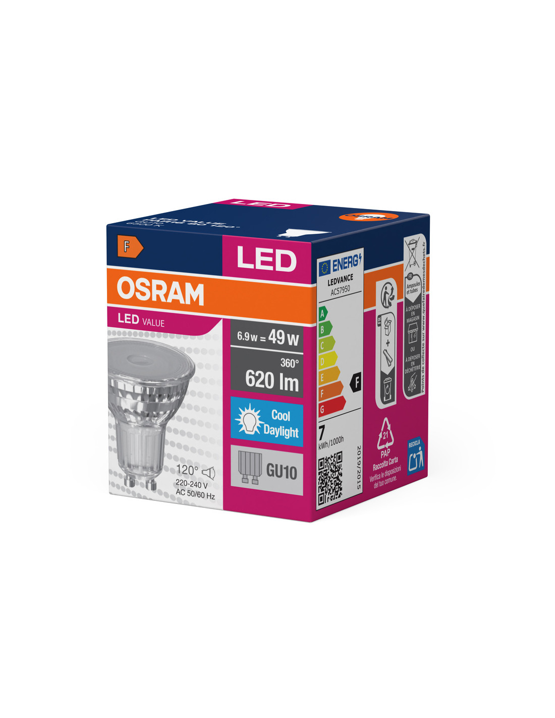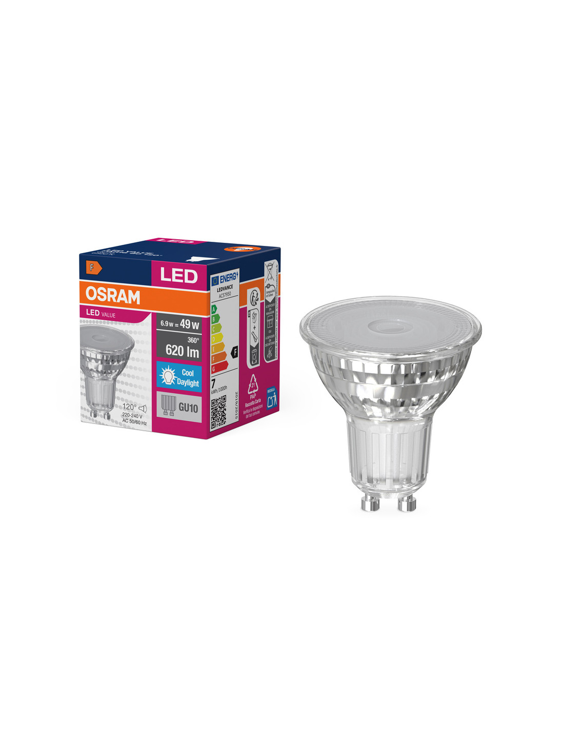ŻARÓWKA LED VALUE PAR16 80 6,9W 6500K zimna biała 575LM 120° GU10 GLASS