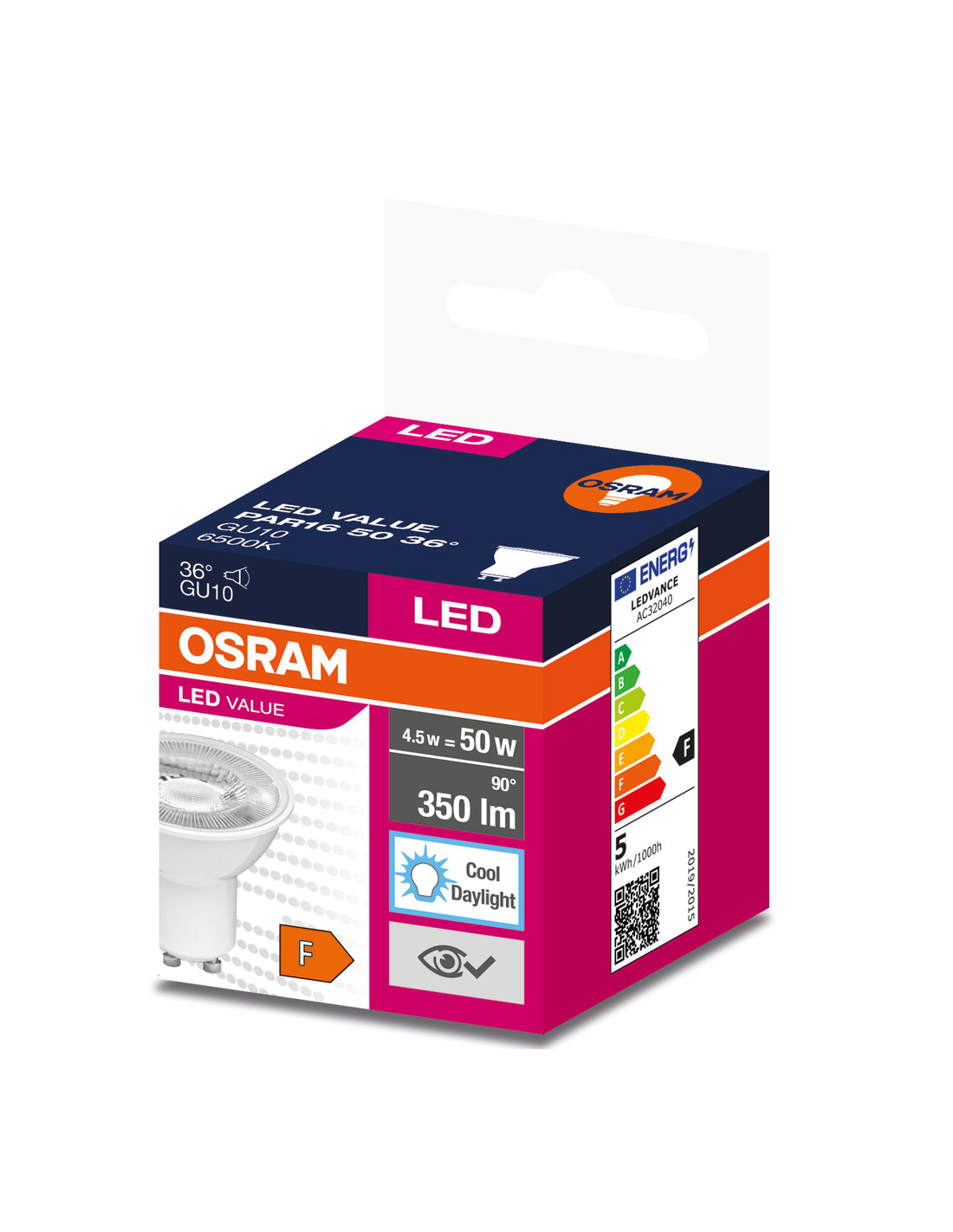 ŻARÓWKA LED LVPAR16 50 4.5W 6500K zimna biała 350LM 36° GU10 EUE