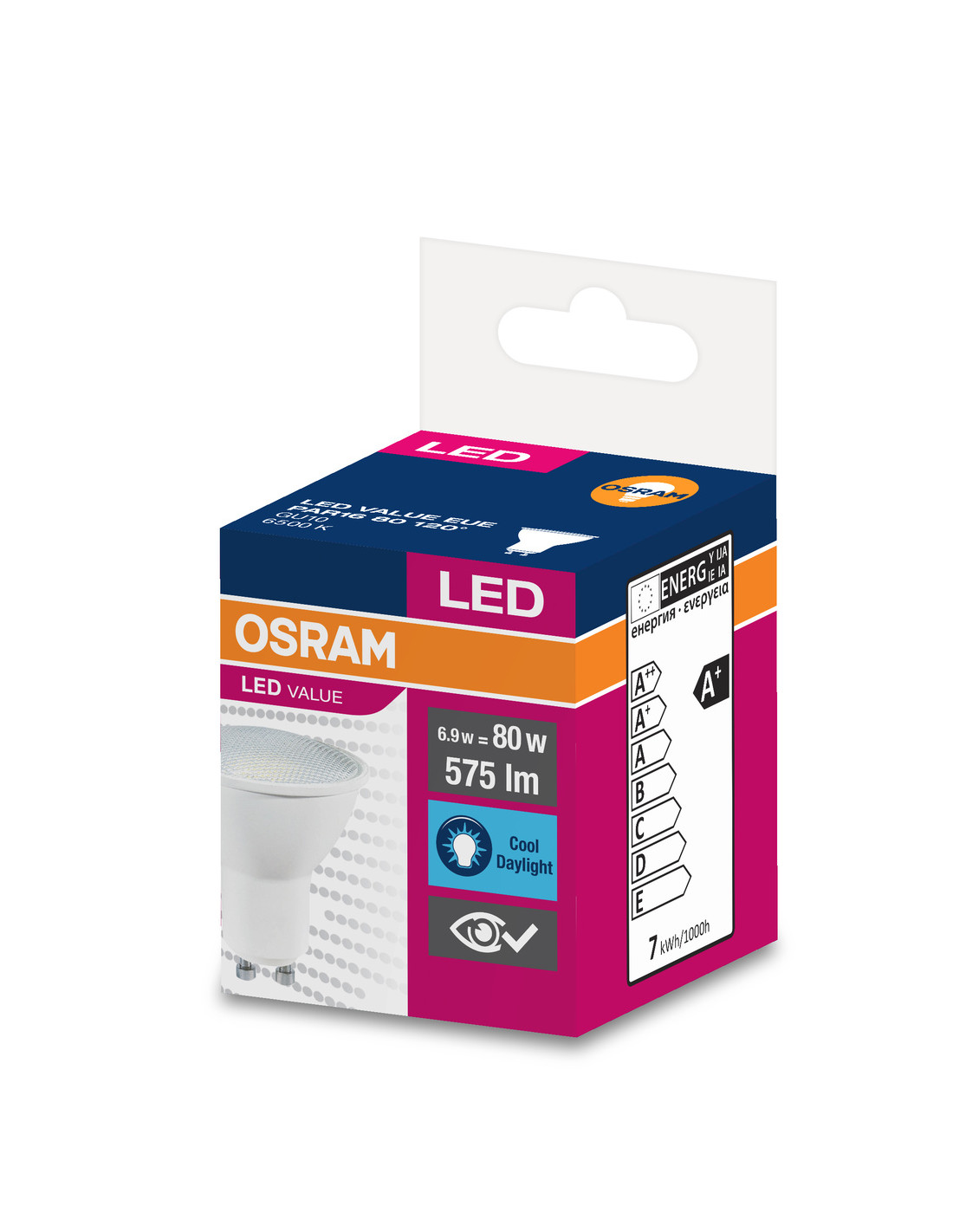 ŻARÓWKA LED LVPAR16 80 6,9W 6500K zimna biała 575LM 120° GU10 EUE