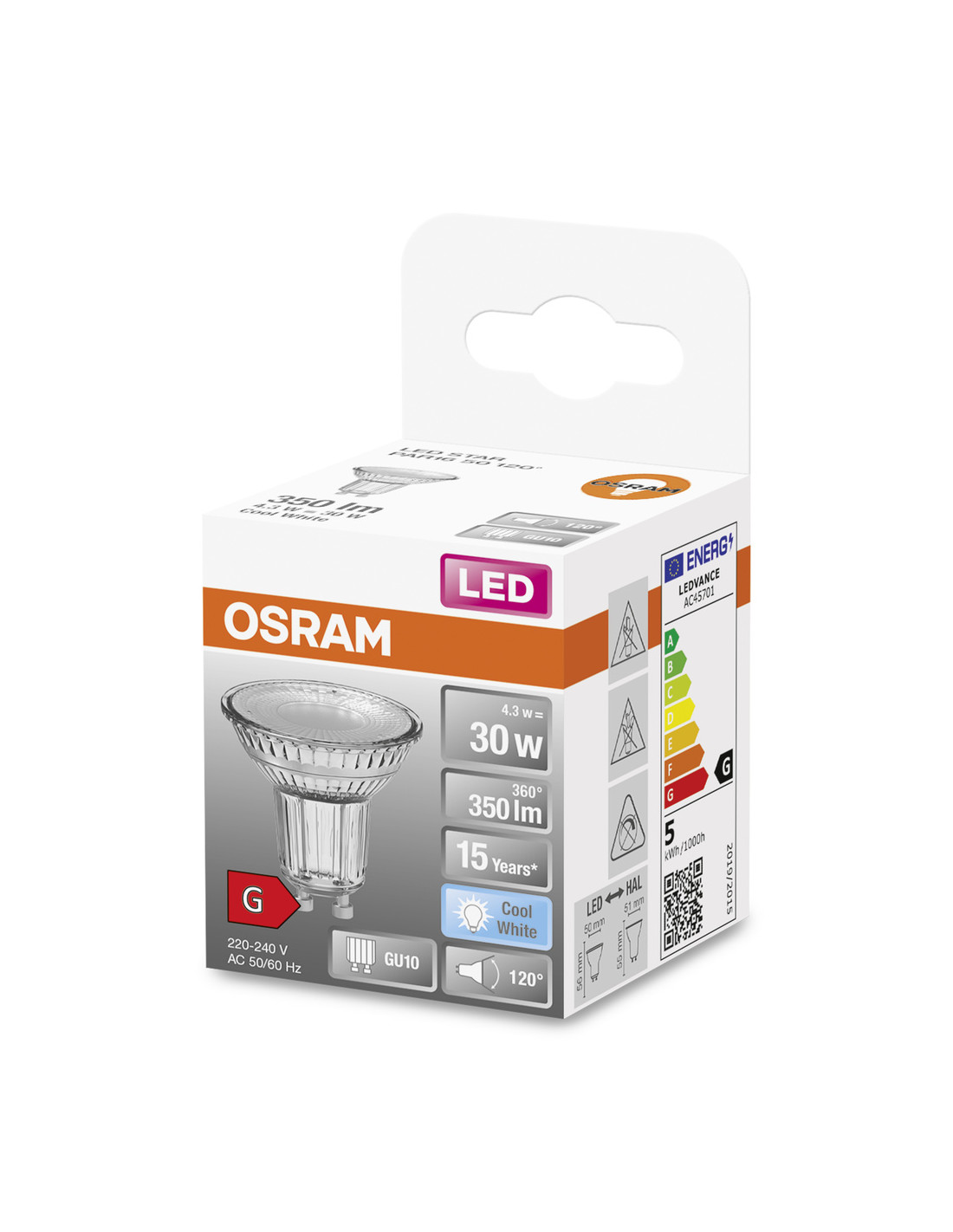 ŻARÓWKA LED SPAR16 50 120° 4.3W 4000K neutralna biała 350LM GU10 GLASS