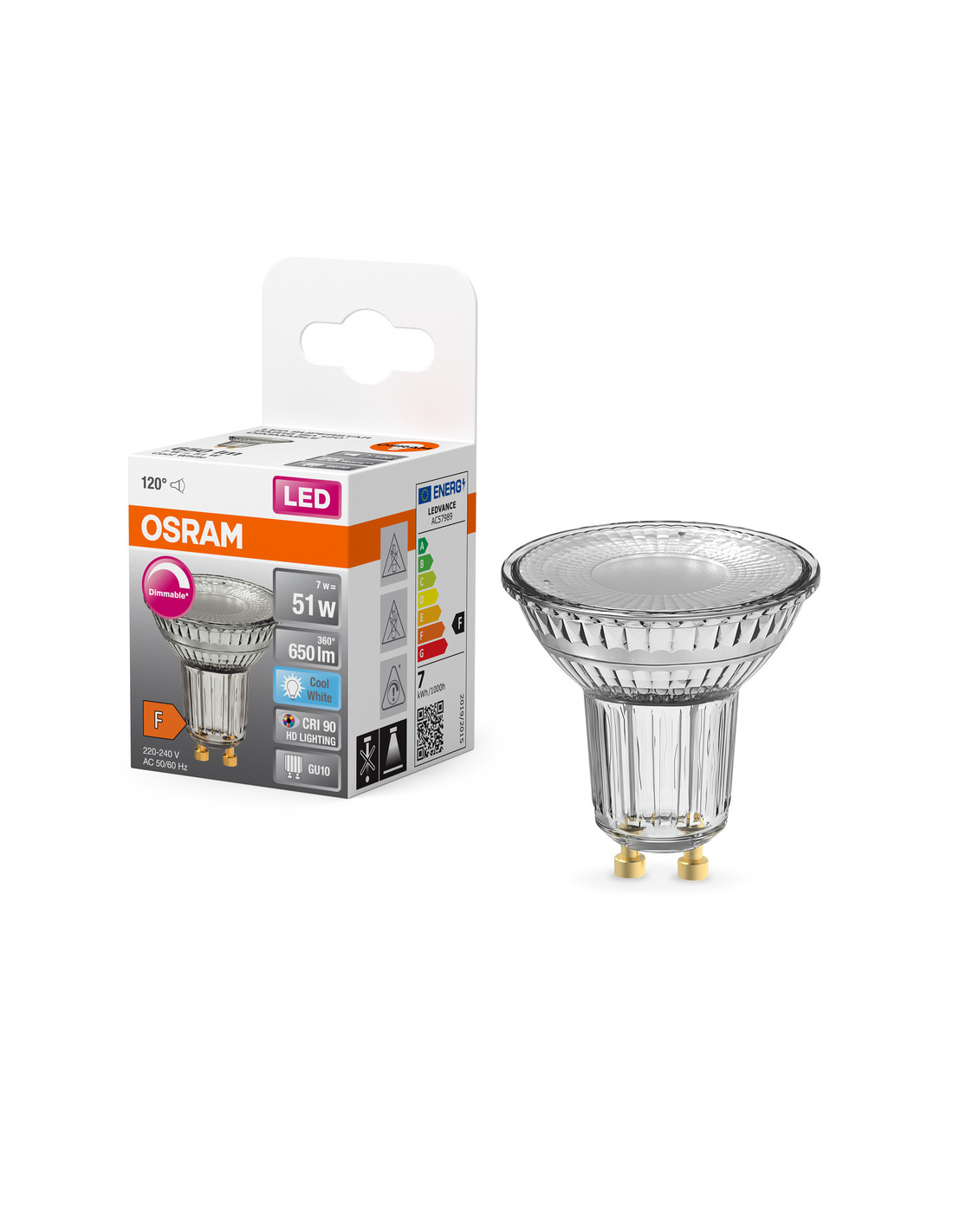 Cechy produktu: Zamienniki LED dla konwencjonalnych żarówek wysokonapięciowych. Ściemnialne (za pomocą licznych popularnych ściemniaczy, zobacz więcej www.ledvance.pl/dim). Lampy niezawierające rtęci. Zalety produktu: Niższe zużycie energii w porównaniu do lamp żarowych lub halogenowych. Wysoka spójność barw dzięki precyzyjnemu sortowaniu struktur półprzewodnikowych. Łatwa wymiana żarówek halogenowych dzięki kompaktowej w pełni szklanej konstrukcji i pojedynczemu układowi optycznemu. Idealne, ekonomiczne reflektory kierunkowe. Obszary zastosowań: Sklepy. Hotele. Muzea, galerie sztuki. Pomieszczenia mieszkalne. Jako światło wpuszczane do oznaczania przejść, drzwi, schodów itp.. Oświetlenie kierunkowe akcentujące. Szafki do ekspozycji i witryny sklepowe. Oświetlenie kierunkowe obiektów wrażliwych na ciepło, np. żywności roślin itp.. Do użytku na zewnątrz tylko w odpowiednich oprawach zewnętrznych. Porady dotyczące bezpieczeństwa: Nie dotykaj lampy, jeśli jest stłuczona.. Nie wolno używać, jeśli zewnętrzne źródło światła jest uszkodzone..