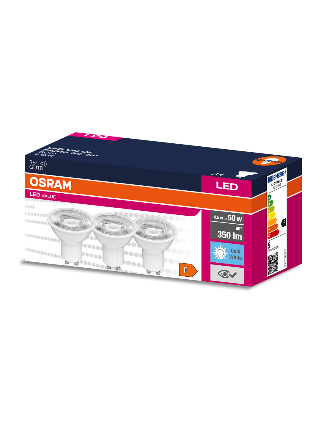 ŻARÓWKA LED 3-PAK LVPAR16 50 4.5W 4000K neutralna biała 350LM 36° GU10 EUE