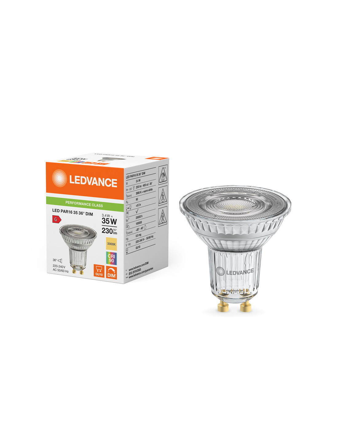 ŻARÓWKA LED P Spot PAR16 GL 35 36° DIM 3,4W 3000K ciepła biała CRI90 GU10 230LM