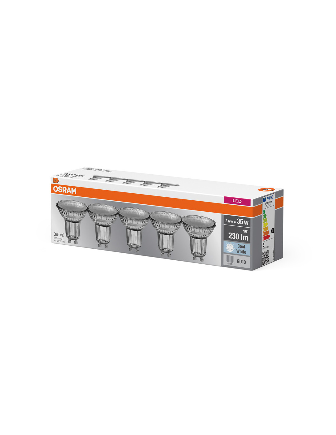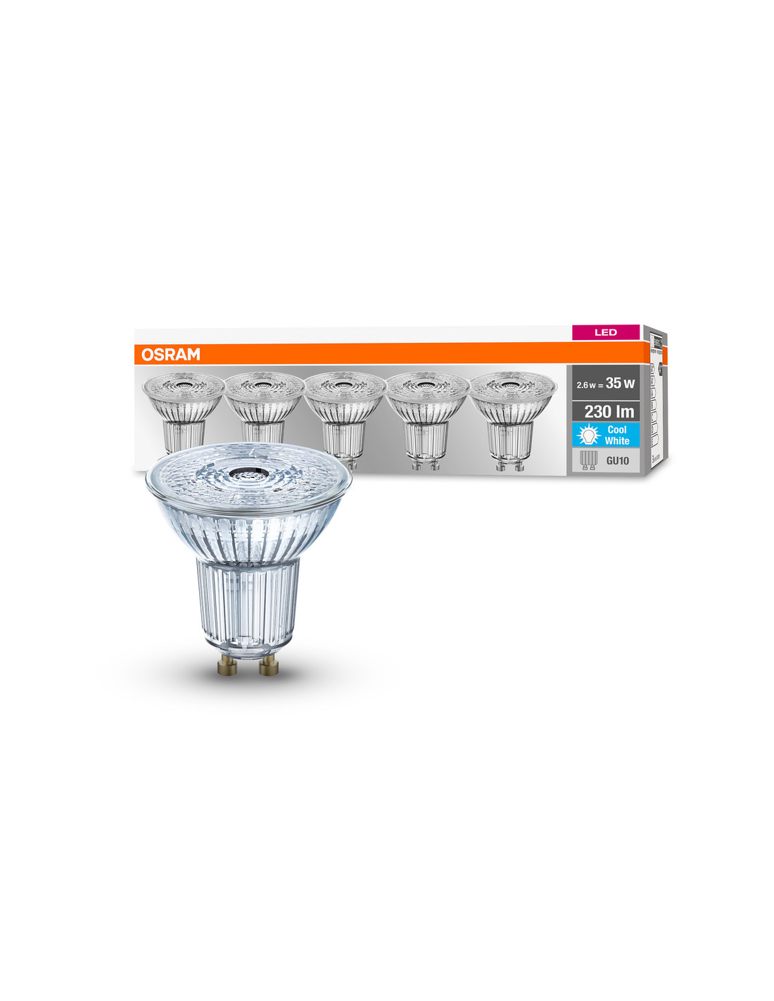 OSRAM 5 szt. wysokiej jakości lampa LED typu downlight GU10 2,6 W PAR16 BASE zimnobiała.