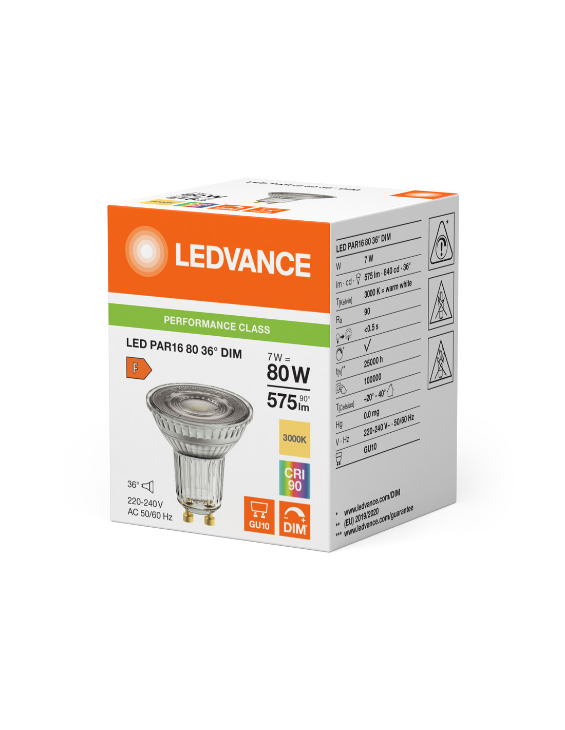 ŻARÓWKA LED P SPOT PAR16 GL 80 36° DIM 7W 3000K ciepła biała CRI90 GU10 575LM