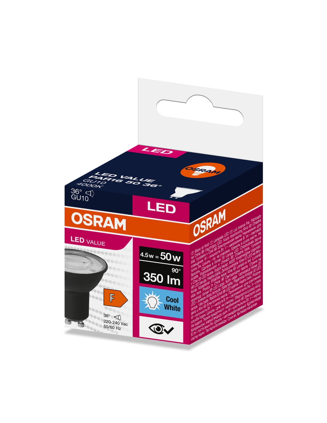 ŻARÓWKA LED LVPAR16 50 4,5W 4000K neutralna biała 350LM 36° GU10 EUE CZARNA