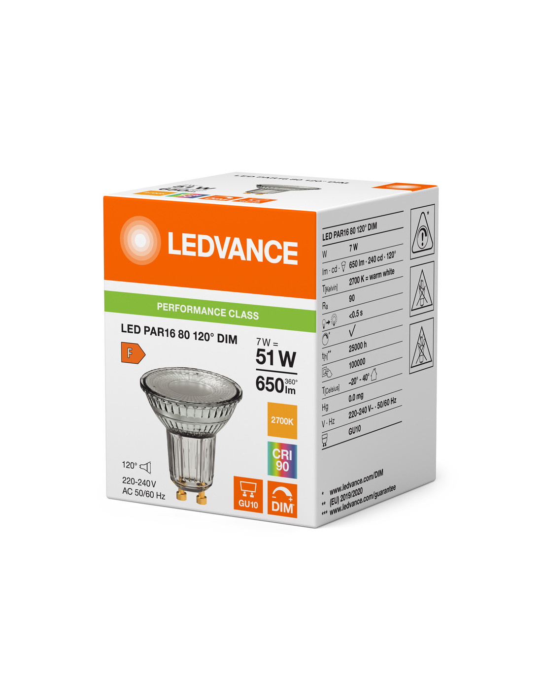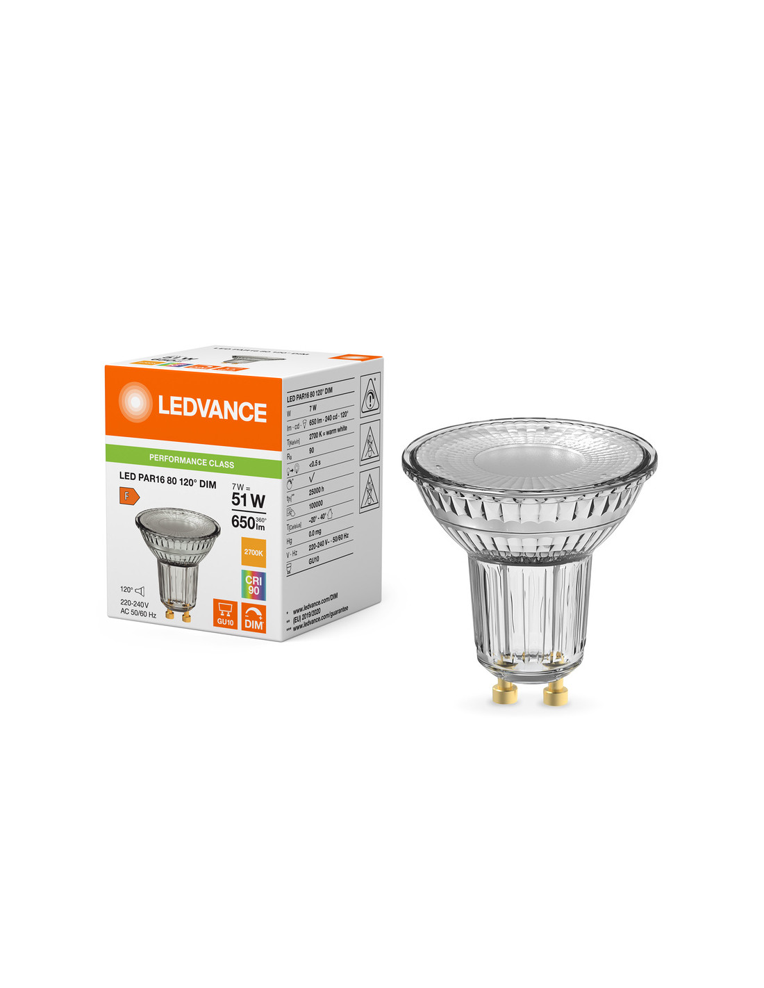 ŻARÓWKA LED P SPOT PAR16 GL 80 51 120° DIM 7W 2700K ciepła biała CRI90 GU10 650LM