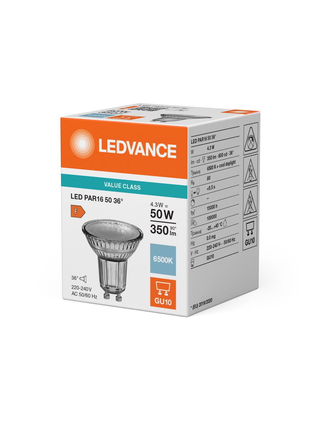 ŻARÓWKA LED VALUE CLASS SPOT PAR16 GL 50 36° 4,3W 6500K zimna biała GU10 350LM