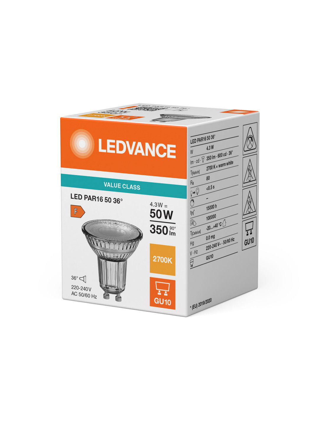 ŻARÓWKA LED VALUE CLASS SPOT PAR16 GL 50 36° 4,3W 2700K ciepła biała GU10 350LM