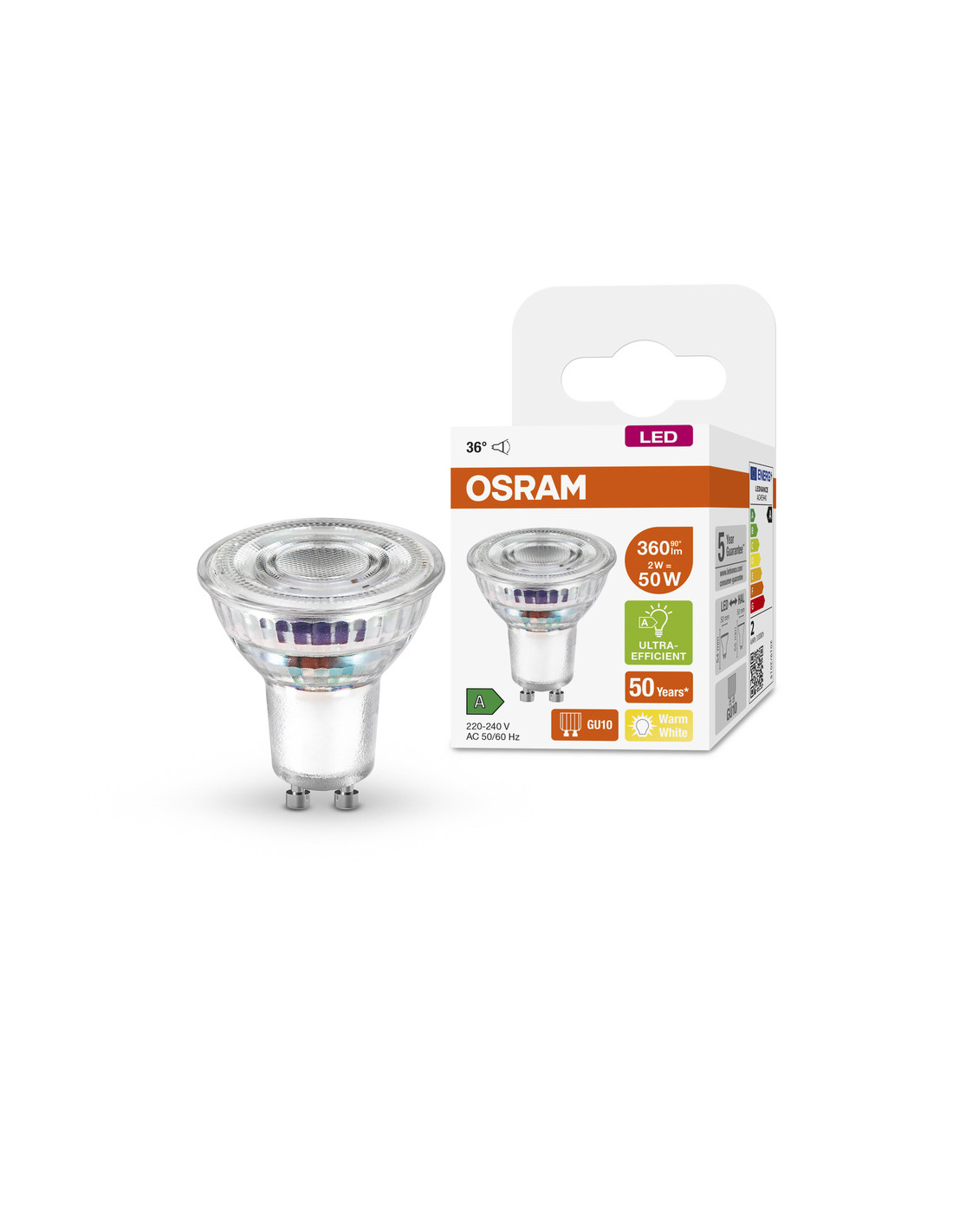 Cechy produktu: Zamiennik LED dla wysokonapięciowych żarówek halogenowych. Długa trwałość do 50 000 godzin. Skuteczność świetlna: do 180 lm/W. Bardzo duża liczba cykli łączeniowych do 100 000. Zalety produktu: Wygląd, wymiary i strumień świetlny porównywalne z żarówkami halogenowymi. Niskie zużycie energii. Natychmiast 100 % światła, bez czasu nagrzewania. Niskie tętnienie światła. Obszary zastosowań: Zastosowania domowe. Oświetlenie ogólne. Do użytku na zewnątrz tylko w odpowiednich oprawach zewnętrznych. Porady dotyczące bezpieczeństwa: Nie dotykaj lampy, jeśli jest stłuczona.. Nie wolno używać, jeśli zewnętrzne źródło światła jest uszkodzone..