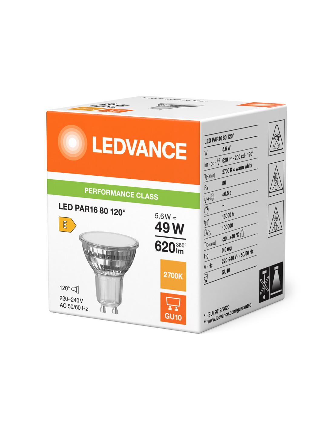 ŻARÓWKA LED P SPOT PAR16 GL 80 49 120° 5,6W 3000K ciepła biała GU10 620LM