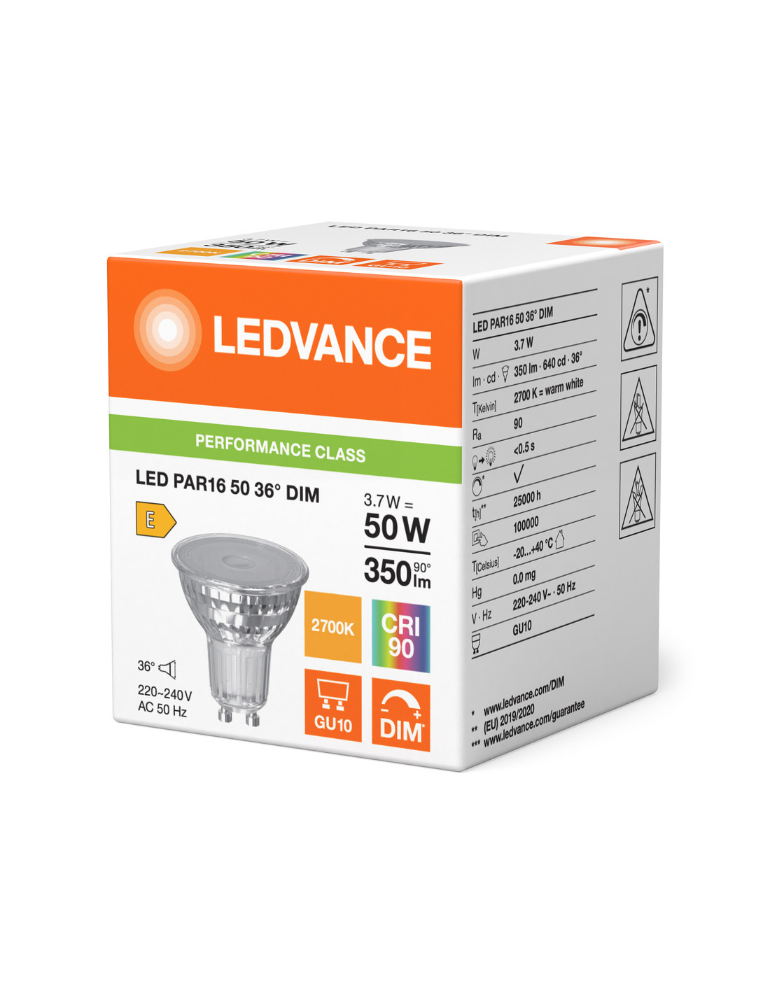 ŻARÓWKA LED P SPOT PAR16 GL 50 36° DIM 3,7W 2700K ciepła biała CRI90 GU10 350LM