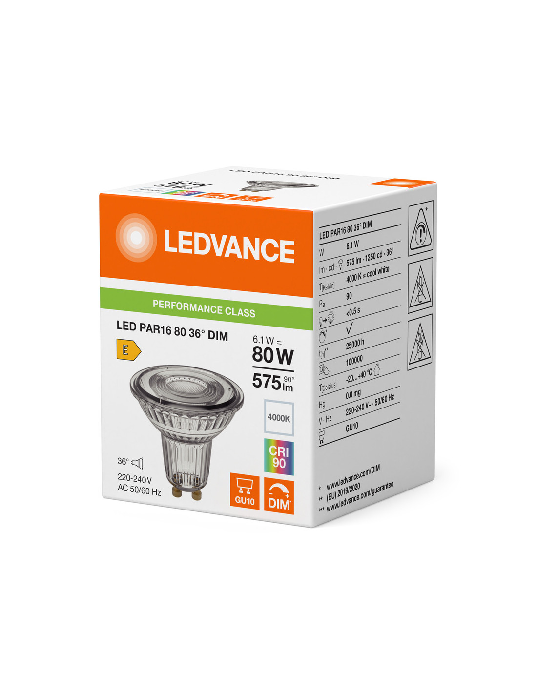 ŻARÓWKA LED P SPOT PAR16 GL 80 36° DIM 6,1W 4000K neutralna biała CRI90 GU10 575LM