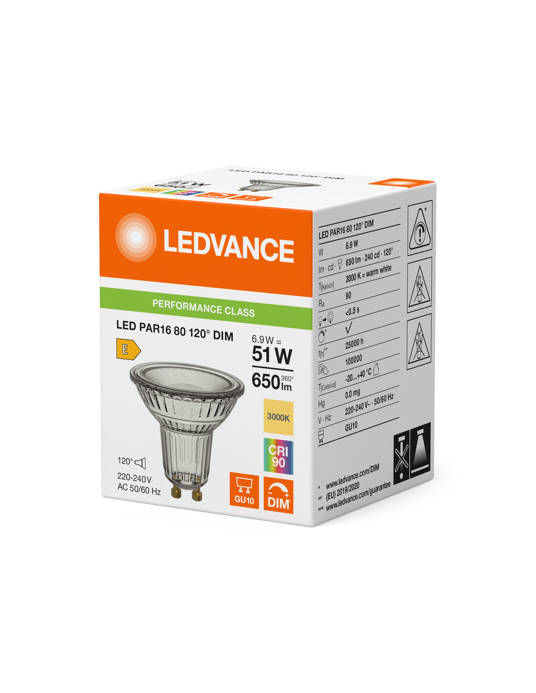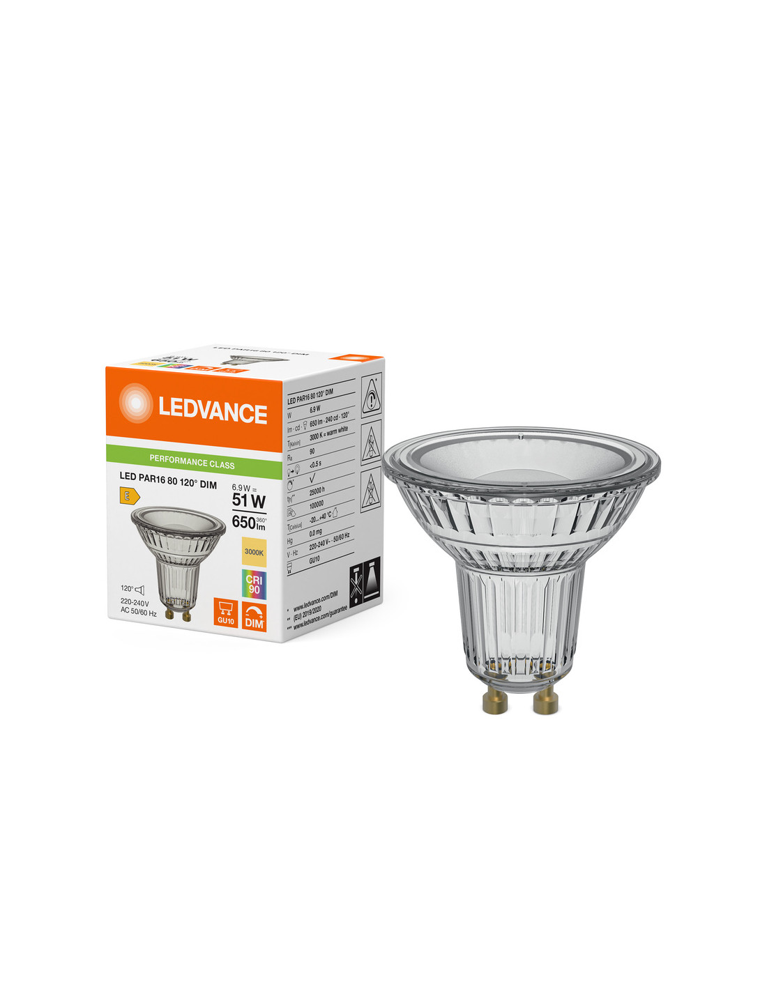 ŻARÓWKA LED P SPOT PAR16 GL 80 51 120° DIM 6,9W 3000K ciepła biała CRI90 GU10 650LM