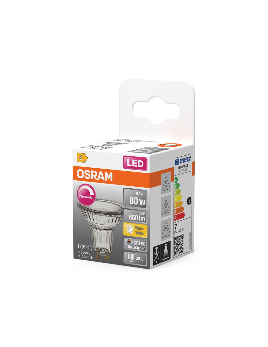 ŻARÓWKA LED SUPERSTAR PAR16 80 120° DIM 6,9W 2700K ciepła biała CRI90 GU10 650LM GLASS