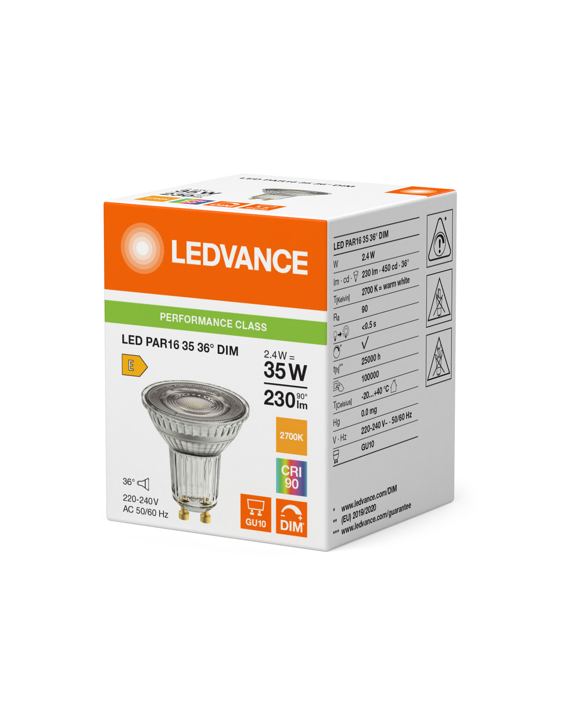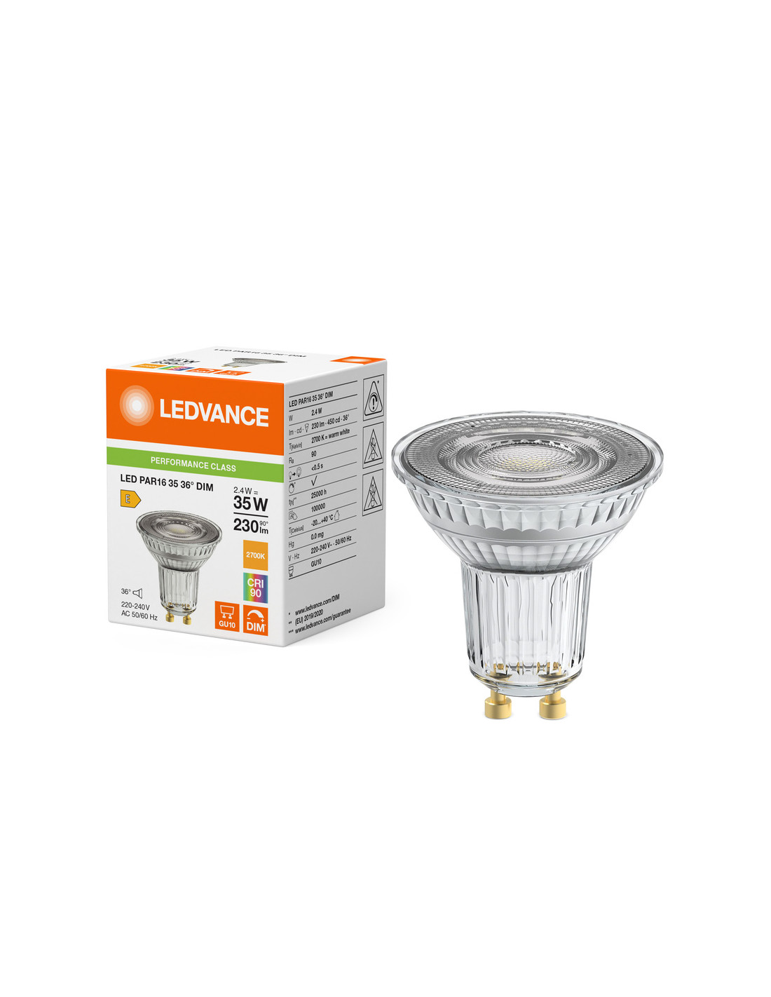 ŻARÓWKA LED P SPOT PAR16 GL 35 36° DIM 2,4W 2700K ciepła biała CRI90 GU10 230LM