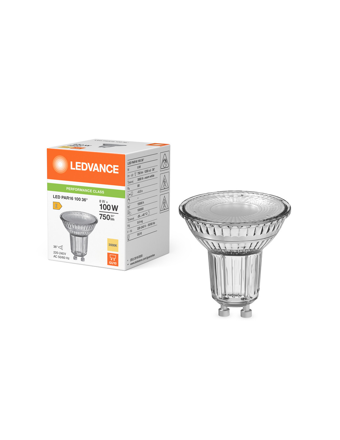 ŻARÓWKA LED P SPOT PAR16 GL 100 36° 8W 3000K ciepła biała GU10 750LM