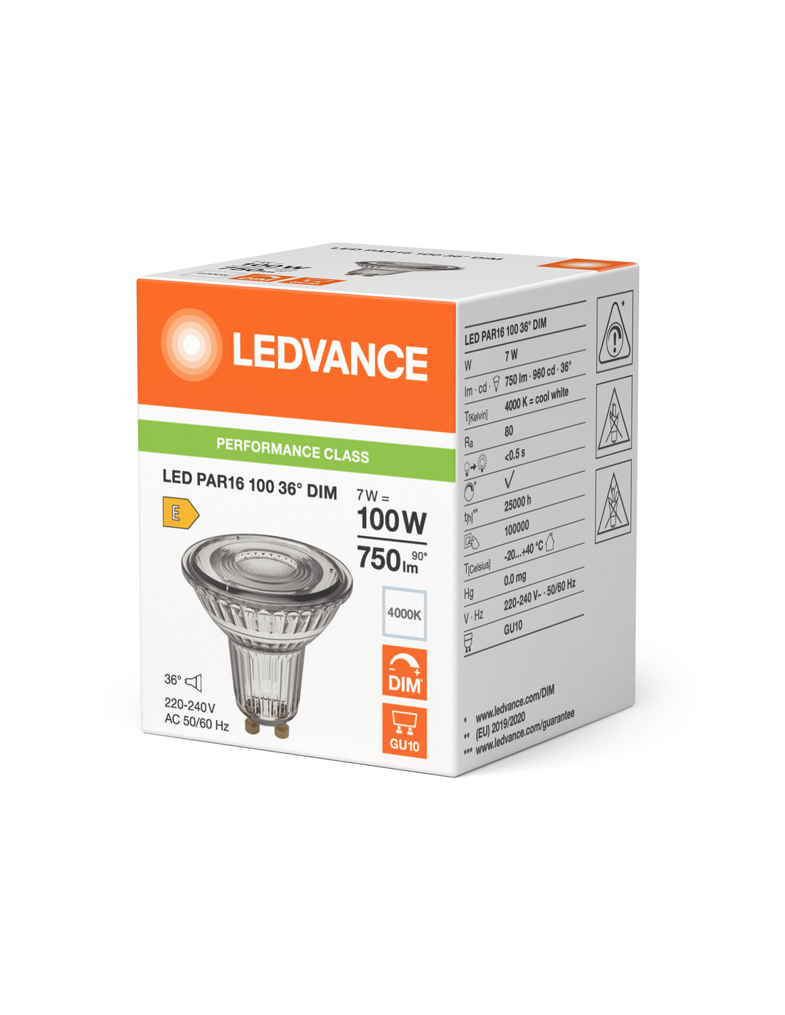 Cechy produktu: Zamiennik LED dla wysokonapięciowych żarówek halogenowych. Wysoka jedorodność barw: 5 sdcm. Ściemnialne. Lampa wykonana ze szkła. Zalety produktu: Szybka, prosta i bezpieczna wymiana bez zmiany okablowania. Wygląd, wymiary i strumień świetlny porównywalne z tradycyjnymi żarówkami lub żarówkami halogenowymi. Niski koszt konserwacji dzięki długiej trwałości. Brak promieniowania UV i podczerwonego w wiązce światła. Bezstopniowe ściemnianie. Bardzo wysoka kompatybilność ze ściemniaczem, patrz również www.ledvance.com/dim. Natychmiast 100 % światła, bez czasu nagrzewania. Niższe zużycie energii w porównaniu do lamp żarowych lub halogenowych. Obszary zastosowań: Sklepy i pomieszczenia wystawowe. Zastosowania domowe. Zastosowania komercyjne. Oświetlenie akcentujące. Do użytku na zewnątrz tylko w odpowiednich oprawach zewnętrznych. Porady dotyczące bezpieczeństwa: Nie dotykaj lampy, jeśli jest stłuczona.. Nie wolno używać, jeśli zewnętrzne źródło światła jest uszkodzone..